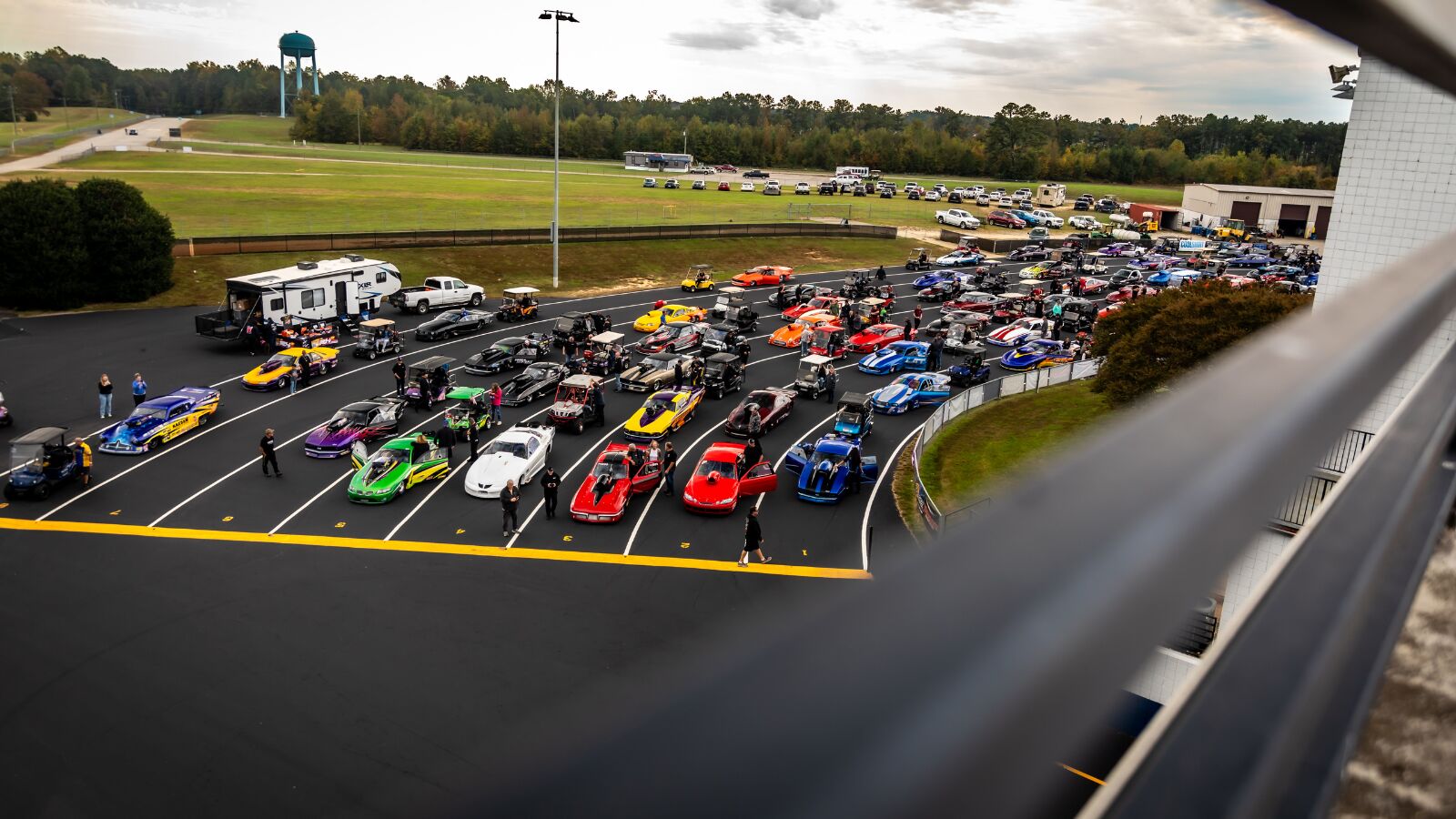 A mass of Top Sportsman entries fill the staging lanes at Virginia Motorsports Park for a PDRA event, which usually draw nearly 100 Top Sportsman cars at VMP. Photograph by Jeff Kline