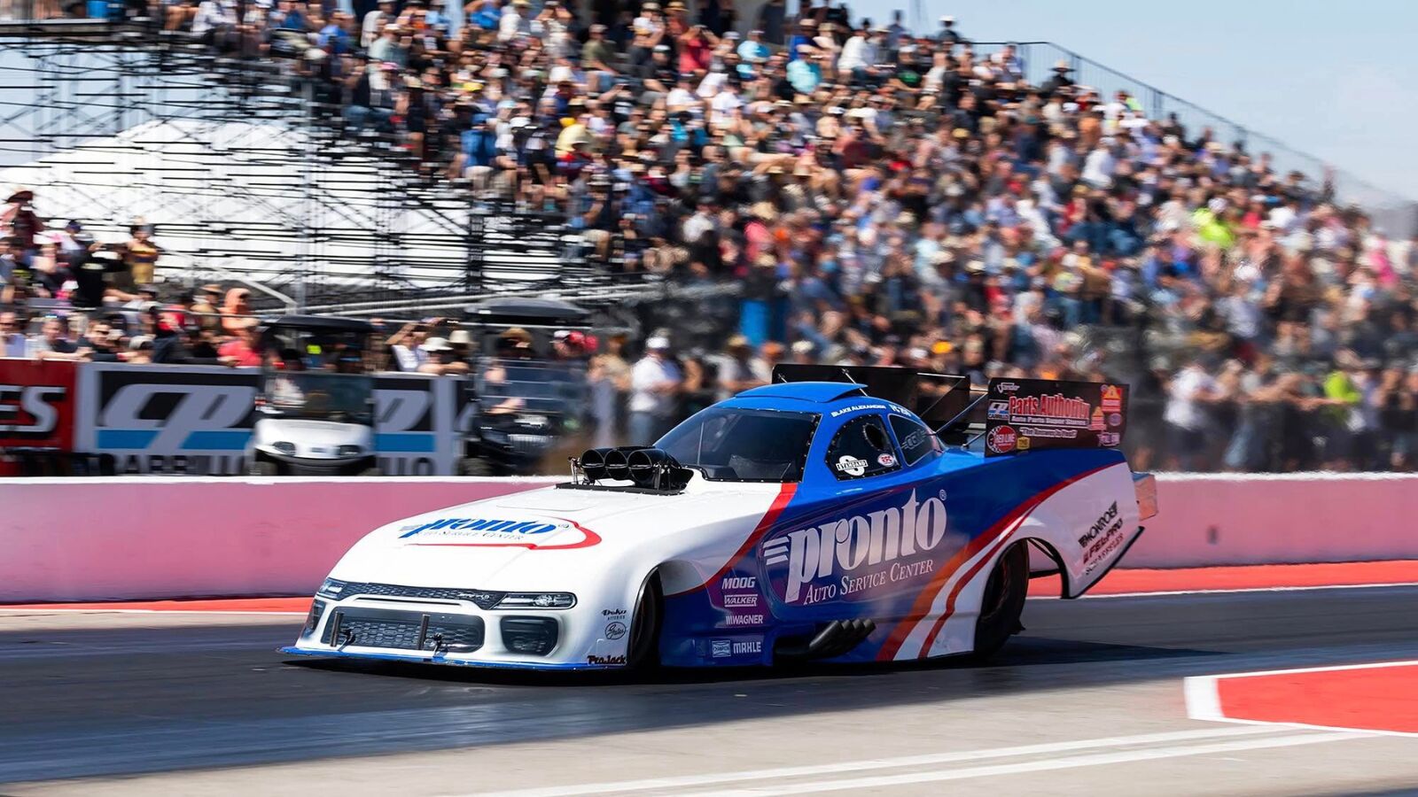 Blake Alexander returns to Funny Car action this weekend (May 16-18) at the NHRA Gerber Collision Route 66 Nationals at Route 66 Dragway when he pilots the 11,000-horsepower Pronto Auto Service Centers Funny Car for Chad Green Motorsports.