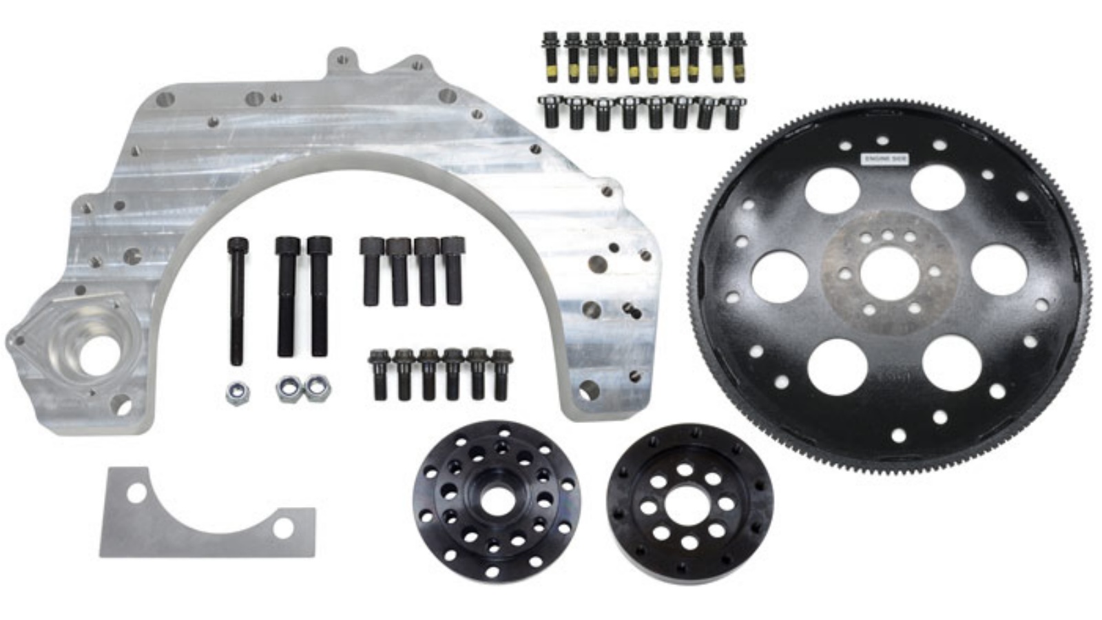 ATI’s Honda K-Series Transmission Adapter Kit allows Honda and Acura owners to easily bolt up a RWD GM transmission such as the Powerglide, T350, T400, 4L60, 4L80E & more, behind a K-Series engine, with bolt patterns for both straight up engine orientation as well as OEM 15 degree slant. Complete Kit includes Adapter Plate, Crank Adapters, SFI 168 Tooth Flexplate and installation hardware.