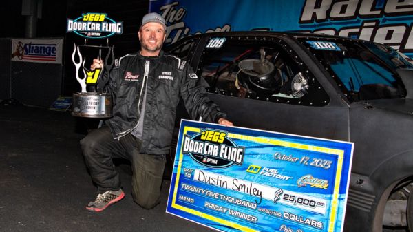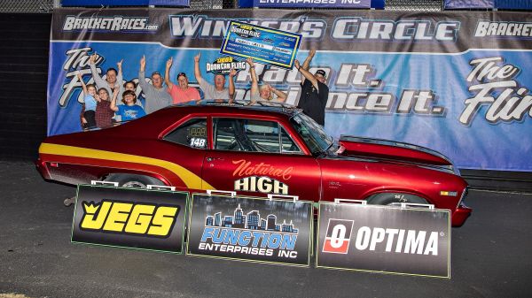 Arnold Smith wheeled the “Natural High” ‘69 Nova to the Function Enterprises $20,000 Shootout win at the JEGS Performance Door Car Fling presented by...