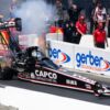 Steve Torrence powered his CAPCO Contractors Top Fuel Toyota past point leader Shawn Langdon in the second round of Sunday’s 25th Gerber Collision Route...