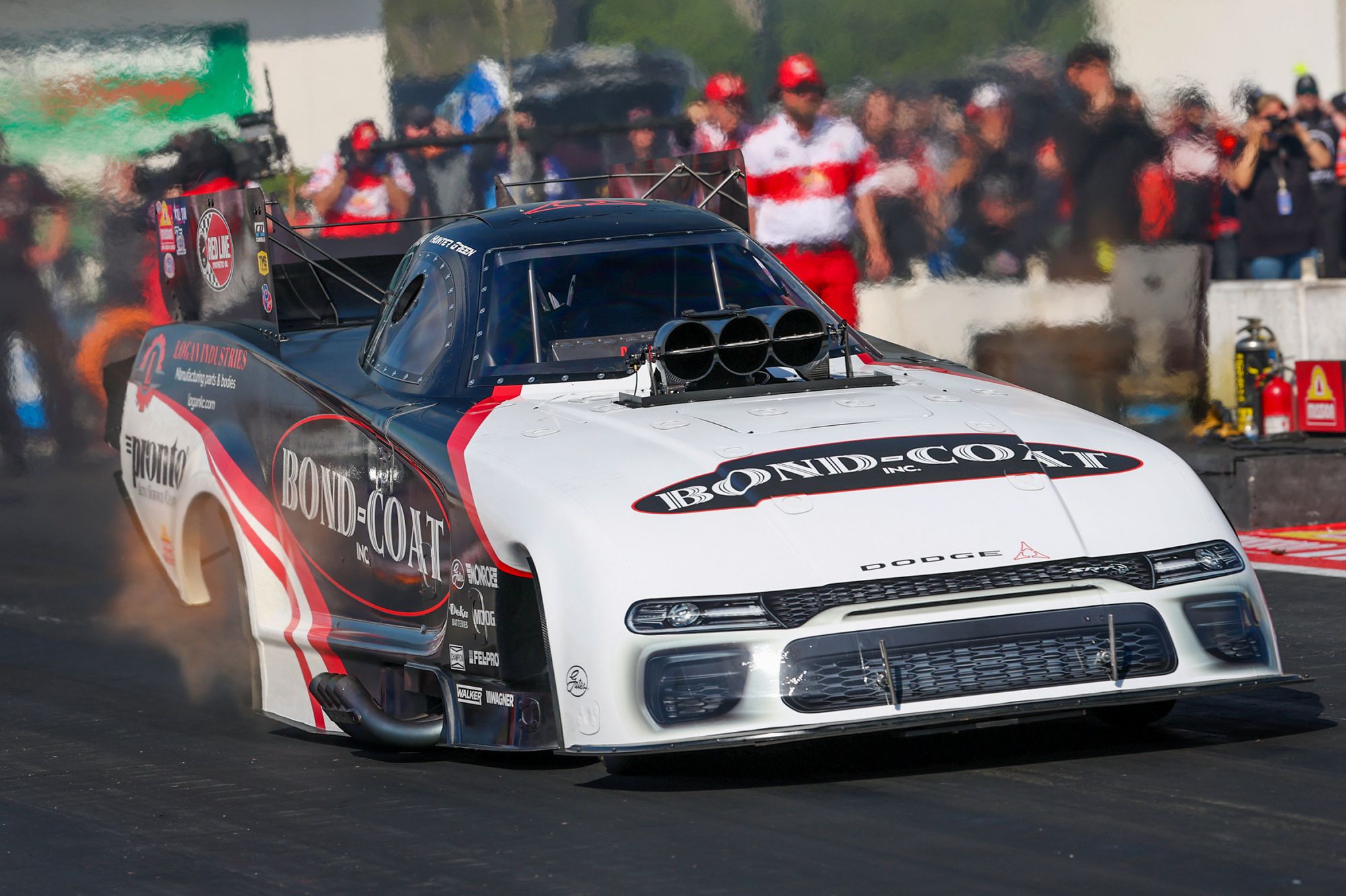 Green, the Midland, Tex., businessman when he isn’t driving his nitro-burning Funny Car, was an upset winner last March in the Gatornationals, but the veteran racer was a top contender after his stellar 3.926 qualifying run on Friday night. And the popular driver continued that performance through the final round victory over Alexis DeJoria with the quickest time of eliminations at 3.959.