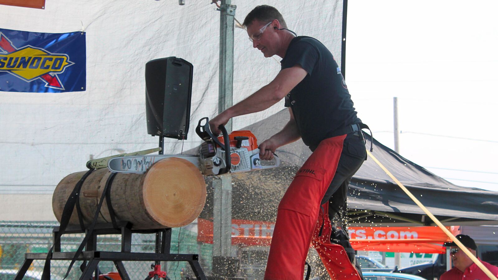 The United States Open Hot Saw Championship sponsored by Stihl, Real American Hardwood, Troyer Hardwood, Sunoco Race Fuels, and Jarrett Logistics will be abuzz with chainsaws on Saturday and Sunday following the wildly exciting Pro/Am that have single-cylinder engines sipping high-octane fuels and pumping out 45-70 horsepower with 230-mph chain speeds.