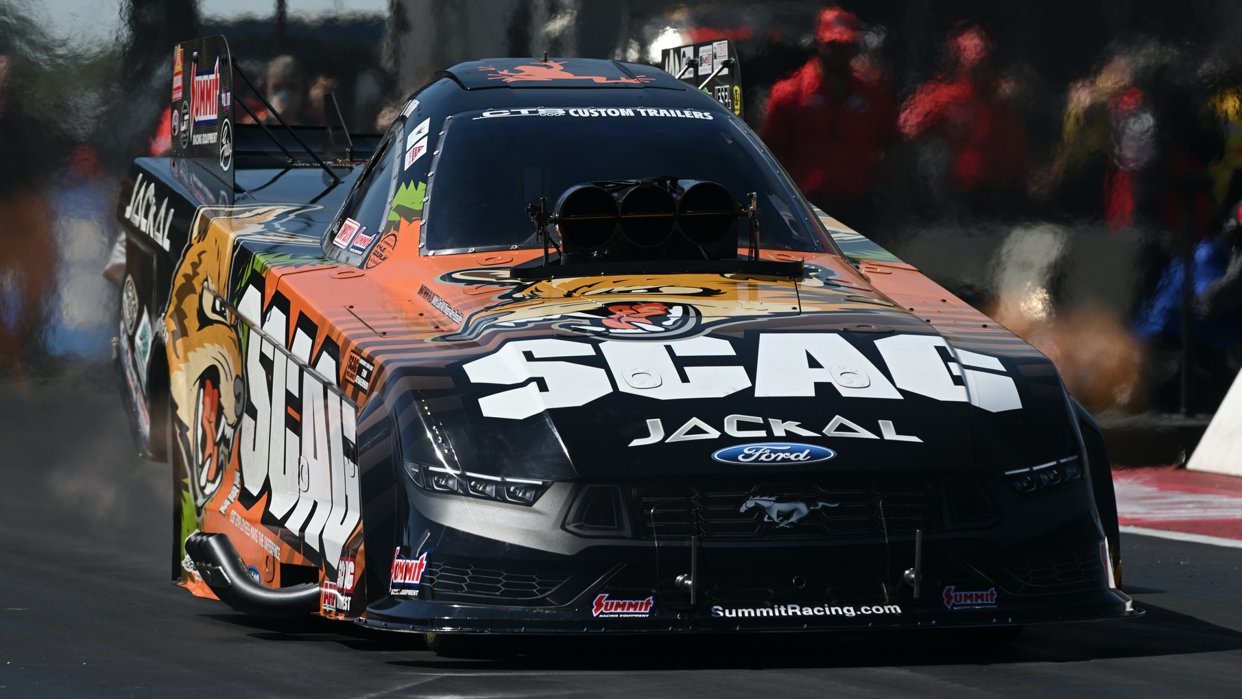 Wilkerson started race day from the No. 7 position with a win against Alexis DeJoria. The SCAG Mustang left the starting line first and never trailed for a 3.924-second pass at 329.28 mph that bettered DeJoria’s 3.958 at 329.60. In the second round, Wilkerson took down veteran Jack Beckman driving for powerhouse John Force Racing. It was a clean side-by-side run but Wilkerson had the starting line advantage and never trailed for a 3.944-second pass at 327.46 mph that defeated Beckman’s 3.993 at 323.14.