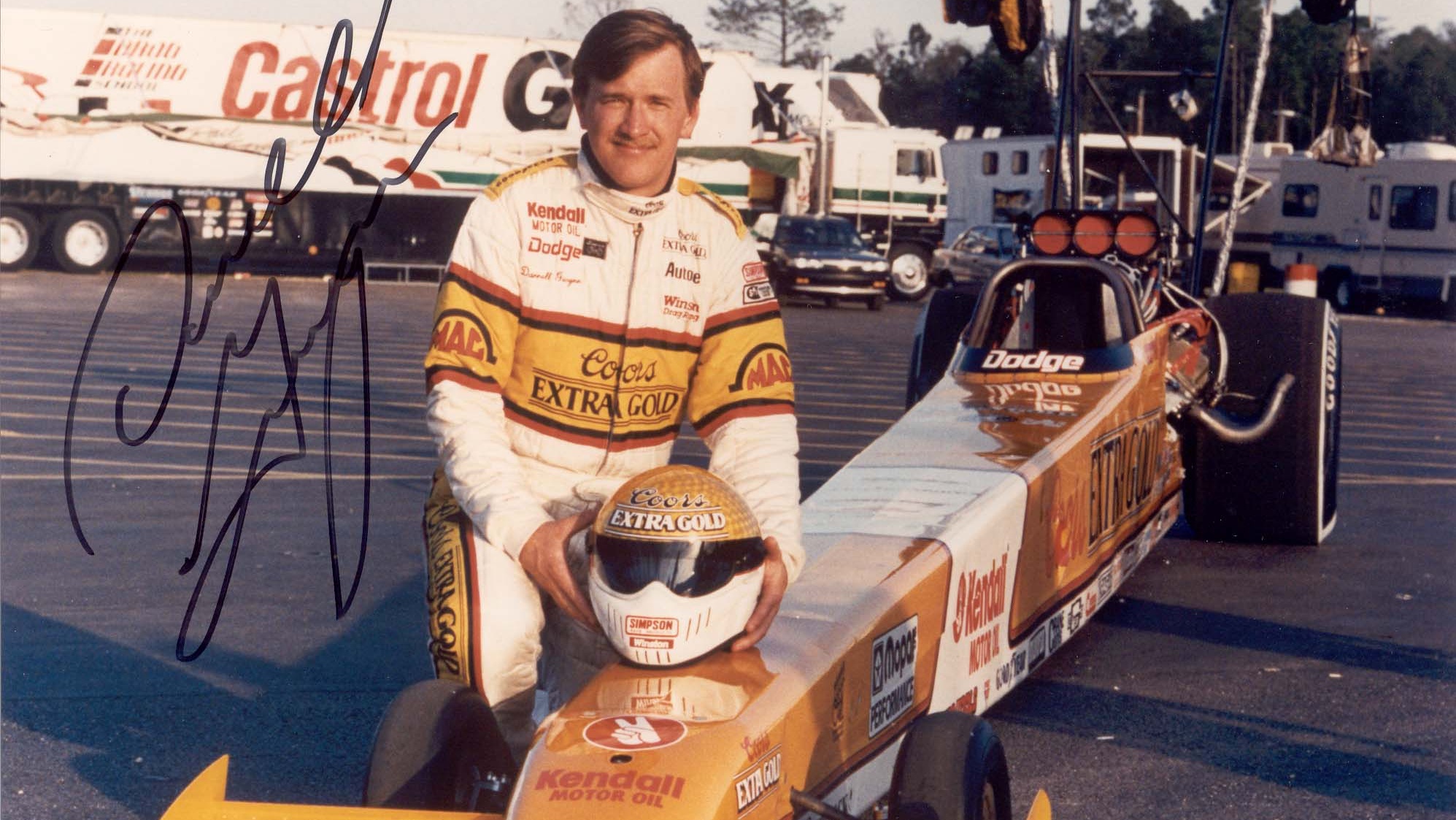 Throughout the late 1980s, Gwynn’s talent and tenacity behind the wheel brought the Coors Extra Gold Top Fuel dragster to national prominence. In 1989, Gwynn set records and won three NHRA national events. His mastery of the dragster defined an era, earning widespread respect for his fearless performance and technical innovation. The car itself became synonymous with speed and excellence, achieving career-best elapsed times and speeds at major NHRA events.