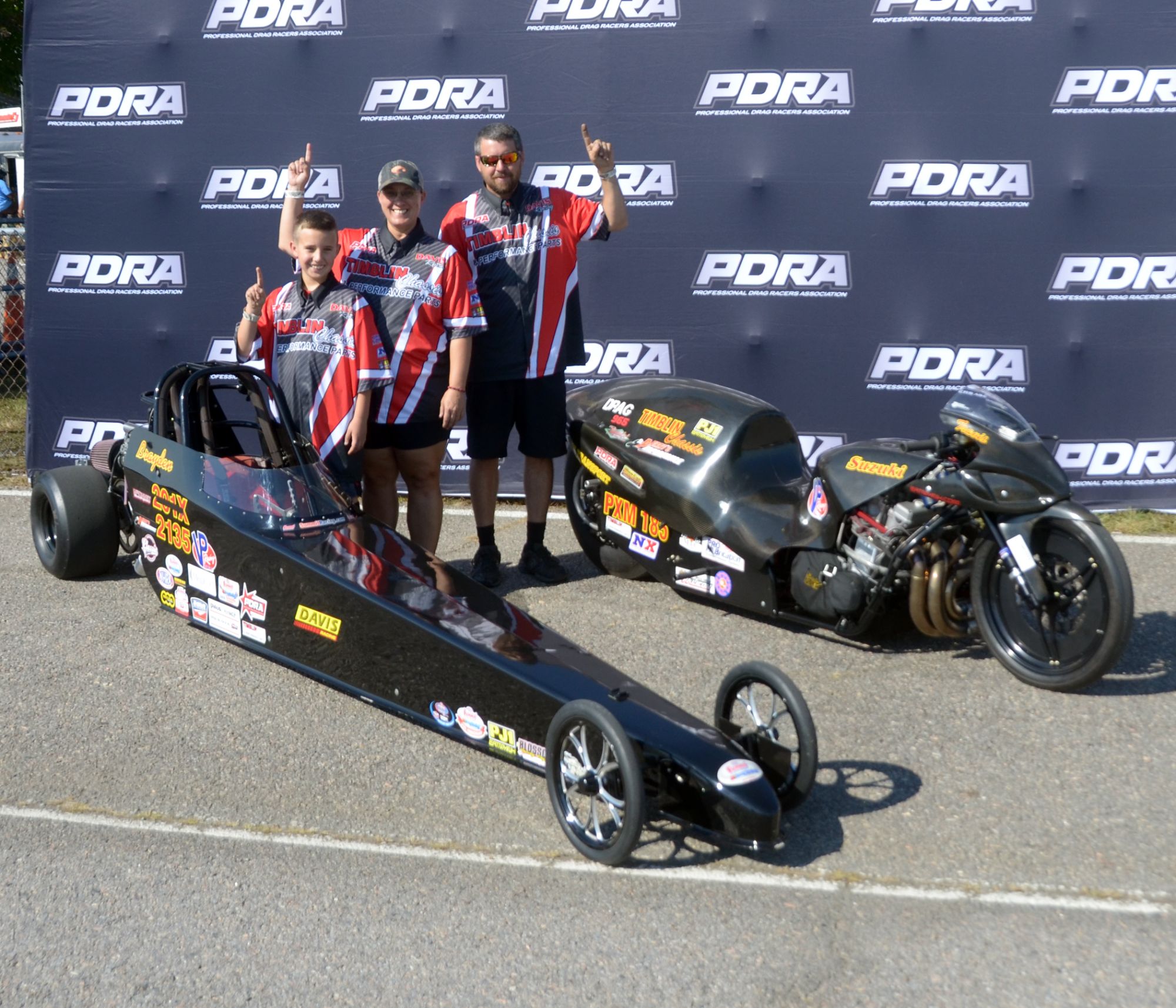 Brayden proved he was ready, as he went on to win the event in both Pro Nitrous Motorcycle and Pro Jr. Dragster, making him the first competitor in series history – and possibly drag racing history – to win in a professional class and a Jr. Dragster class at the same event. Proving it wasn’t a fluke, Davis repeated the double-up two races later, giving Travis a dream Father’s Day weekend at the North vs. South Shootout.