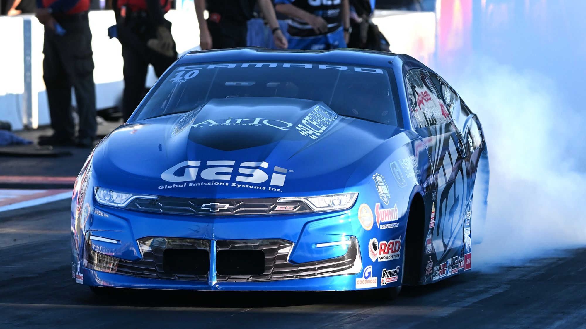 Competing in one of the most technologically advanced categories can place quite a burden on a driver. When the equipment beneath you comes from the most successful team in NHRA Pro Stock history, one is tasked with rising to meet the capability of said equipment, but on Friday at the facility nestled in the shadow of the St. Louis Arch, Eric Latino did just that. Driving the GESi Chevrolet Camaro out of the famed KB Titan Racing (KBT) stable, Latino took full advantage of the power available and hit every mark just right to move into position as the provisional No. 1 qualifier.