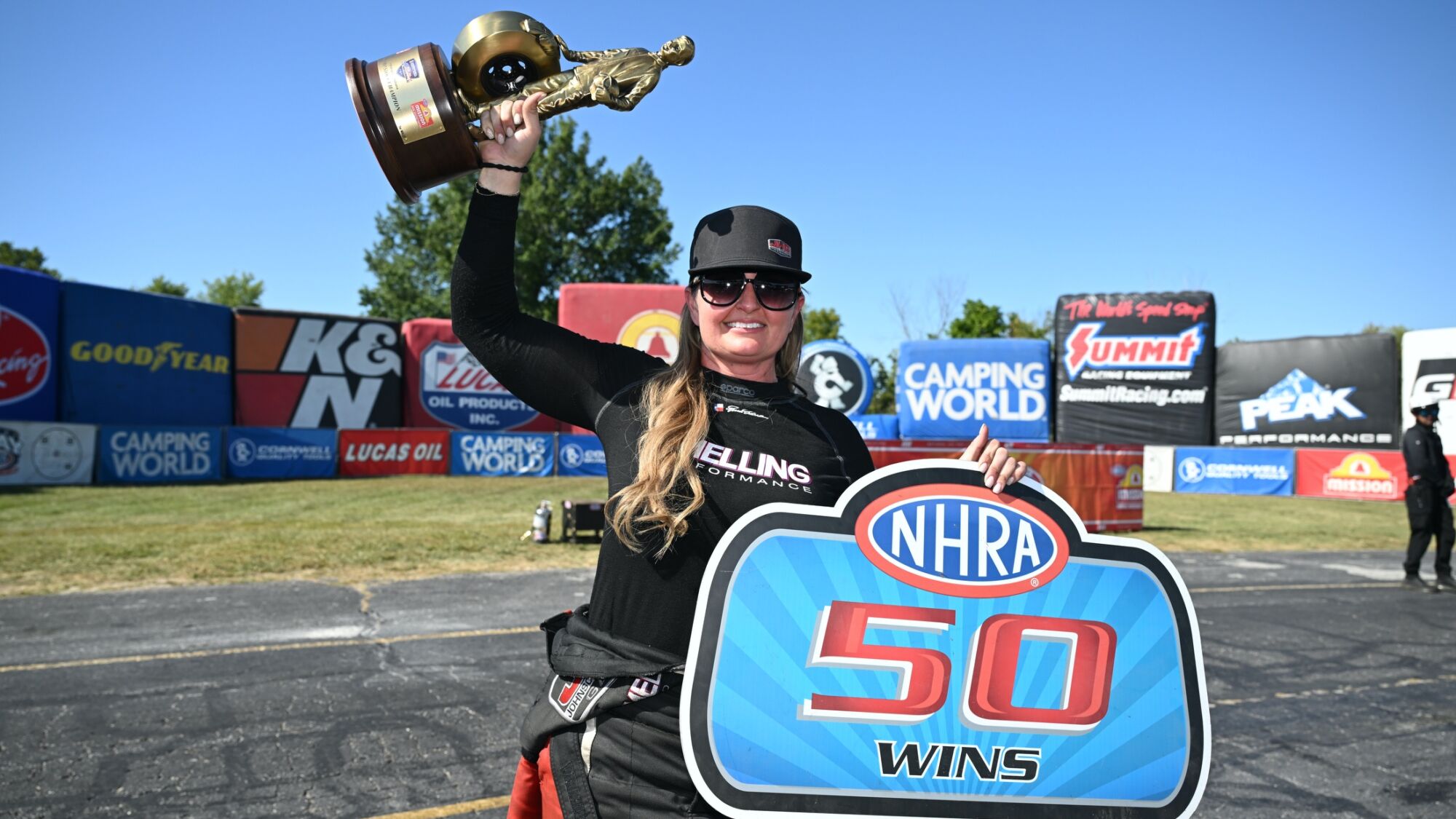 “We finally got number 50,” Enders said. “As a little girl in 1994 rolling under that arch right there, for my first final round at the inaugural Junior Dragster Nationals, the feelings are very, very similar. And here we are, 30 something odd years later. To get my 50th here at Indy, at the US. Nationals, I don’t know a better book that can be written, and I thank the good Lord for that.”