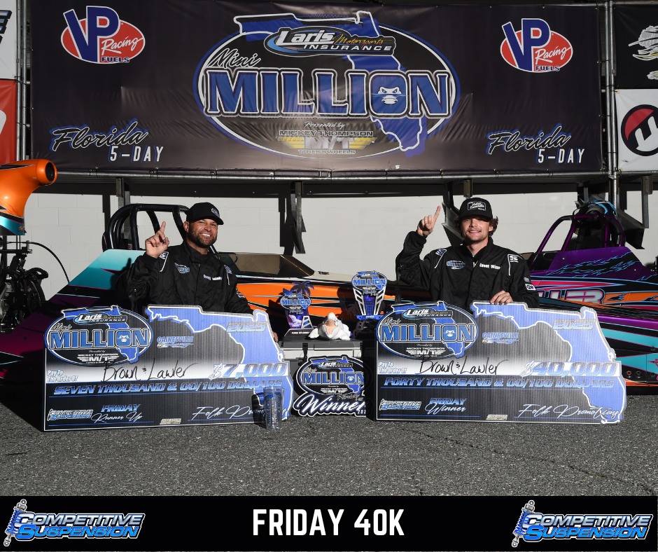 The second annual Laris Motorsports Insurance Mini Million presented by Mickey Thompson Tires & Wheels returned to Gainesville Raceway for a multi-day schedule of big-money bracket racing, drawing competitors from across the country to race for major payouts. The event followed the traditional Florida five-day style format, featuring a major race each day along with specialty awards, raffles, and bonuses.