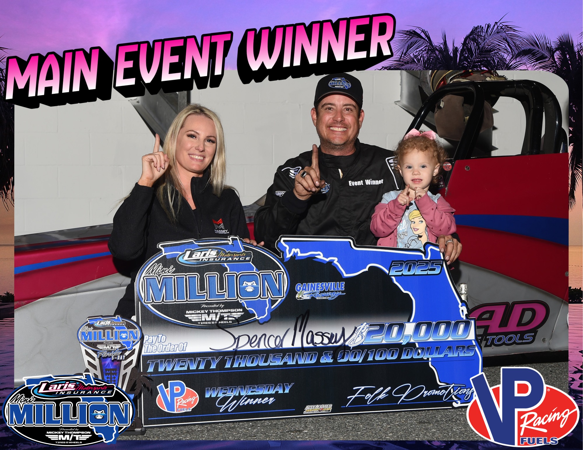 “We’re all out here to have fun and try to turn win lights on and I love it,” Massey said in a post-race interview. “The Million, the Folks, they put on spectacular events and that’s why I drove all the way from Texas to be here in Gainesville, Florida.”
