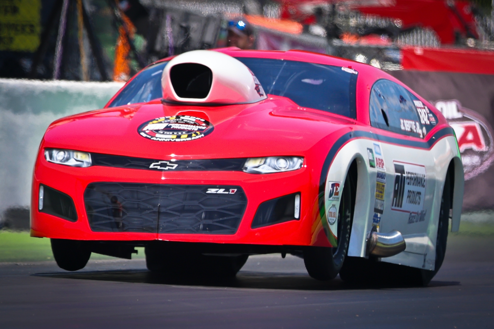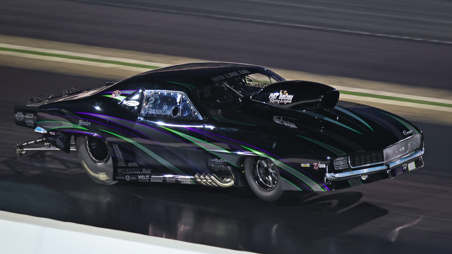 One of the largest Pro Nitrous fields in recent history came down to a unique final round pitting three-time PDRA Pro Nitrous world champion and series co-owner Tommy Franklin against Keith Haney, who’s the owner of the Mid-West Drag Racing Series as well as a multi-time champion in that series. When the tree dropped, it appeared to be Haney’s race as he left first with a .007 reaction time, but a flash of fire out of his hood scoop signaled the end of his day while Franklin drove past with a 3.676 at 206.64 in his Musi-powered “Jungle Rat 3.0” ’69 Camaro. Haney recorded a 3.966 at 148.01 in the runner-up effort.