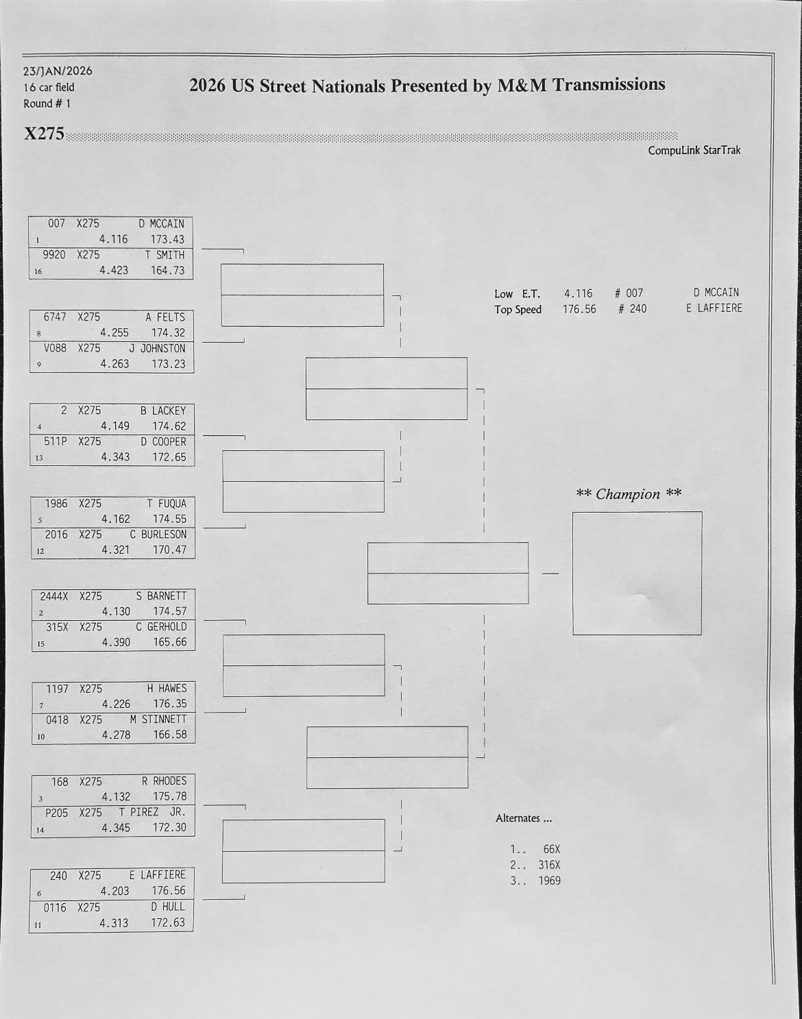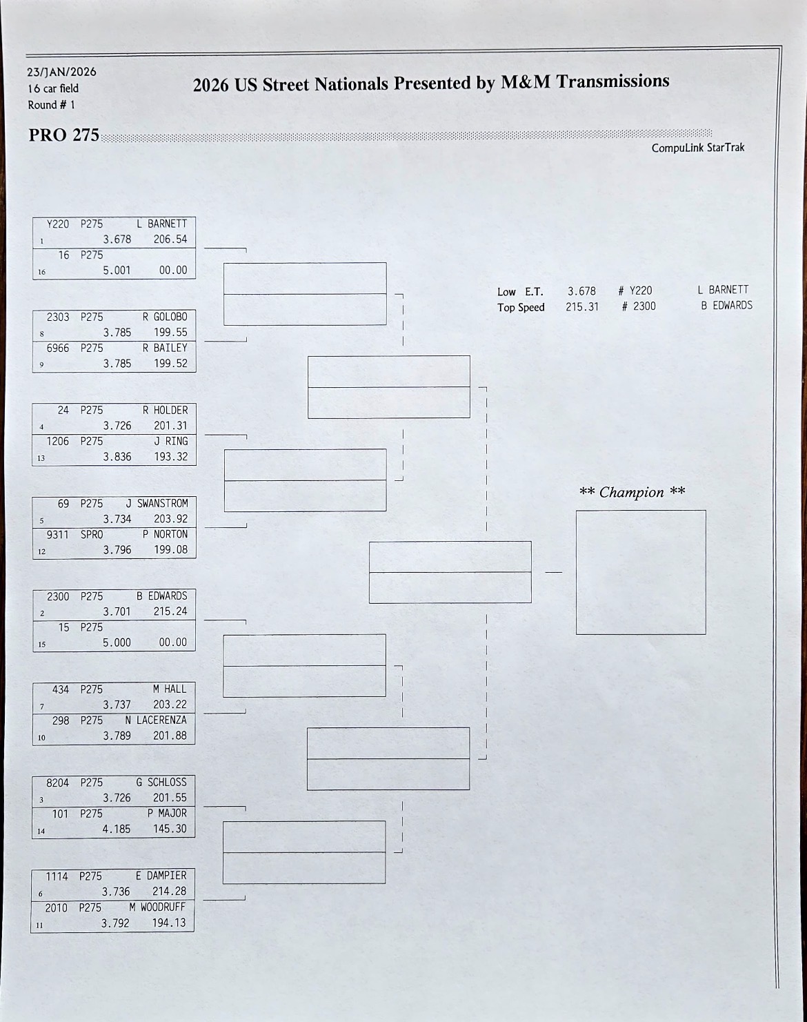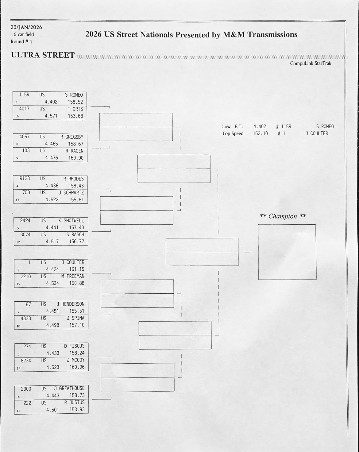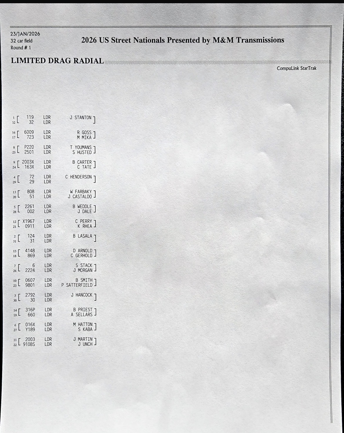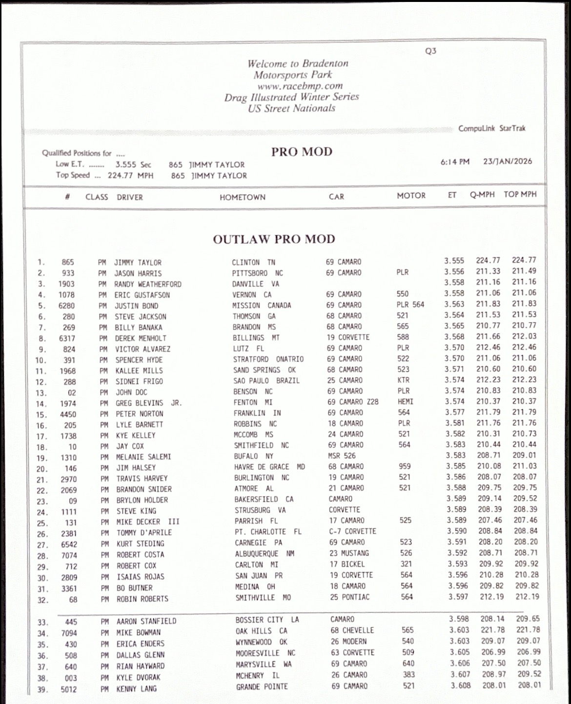 The 2026 U.S. Street Nationals presented by M&M Transmission at Bradenton Motorsports Park continues Friday with more qualifying. It’s the second of three races in the 2025/2026 Drag Illustrated Winter Series presented by J&A Service, along with the season opener for the FuelTech Radial Outlaws Racing Series.