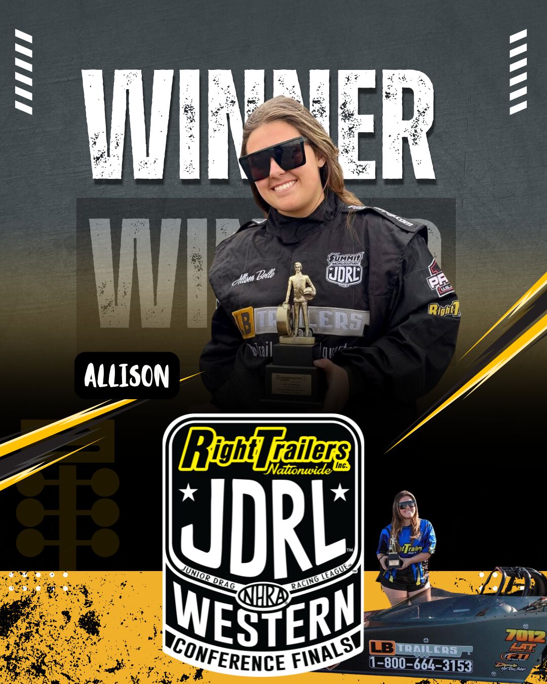 This weekend at Texas Motorplex, three young racers from the Right Trailers and LB Trailers Motorsports Elite 18 team showed off both logos in the lanes at the Right Trailers Western Conference Finals, proving that the next generation of drag racers is bold, talented, and full of heart.