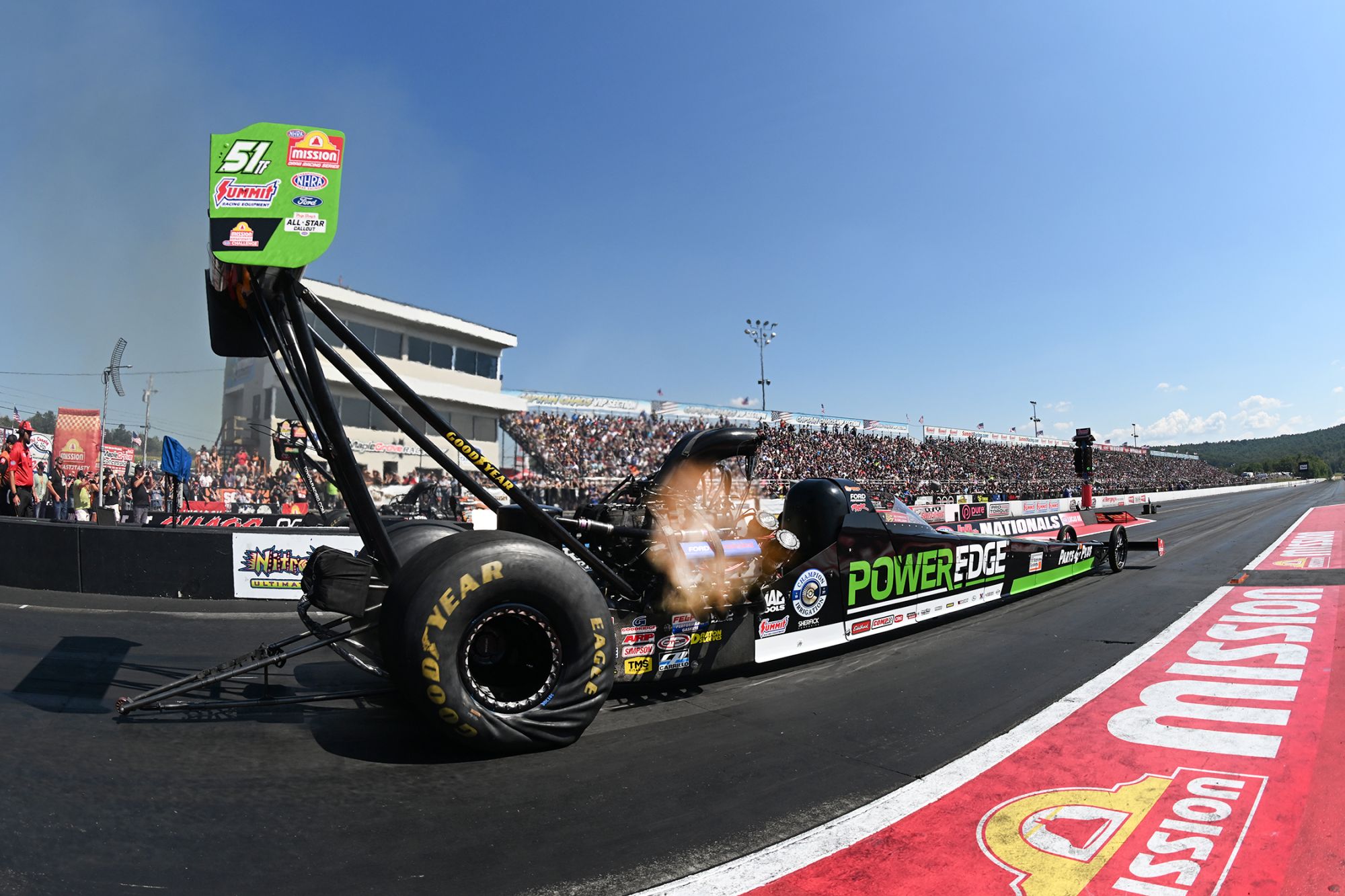 Clay Millican (Top Fuel), Dallas Glenn (Pro Stock) and Gaige Herrera (Pro Stock Motorcycle) also qualified No. 1 at the 15th of 20 races during the 2025 NHRA Mission Foods Drag Racing Series season. It is also the first of six races in the Countdown to the Championship playoffs. The sellout crowd was NHRA’s fifth of the season.