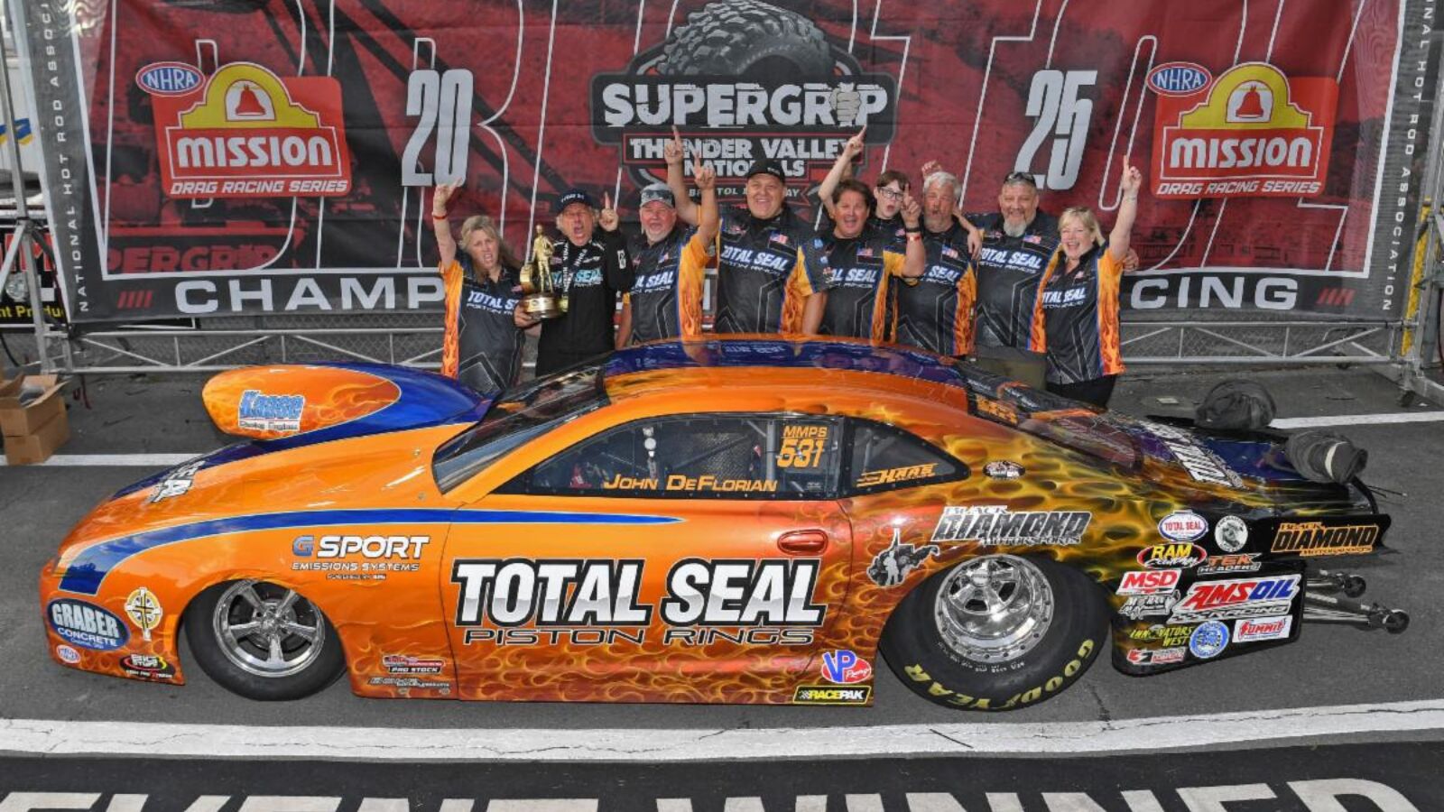 John DeFlorian and his Total Seal Chevy Camaro picked up their first win in Johnson’s Horsepowered Garage Mountain Pro Stock Sunday at the Super Grip NHRA Thunder Valley Nationals at Bristol Dragway.
