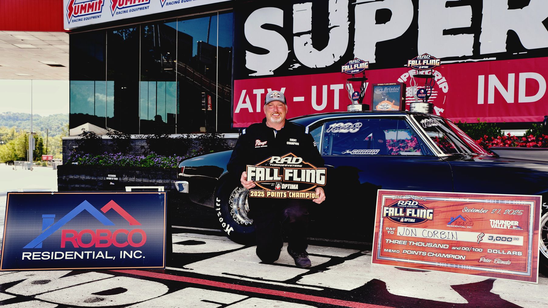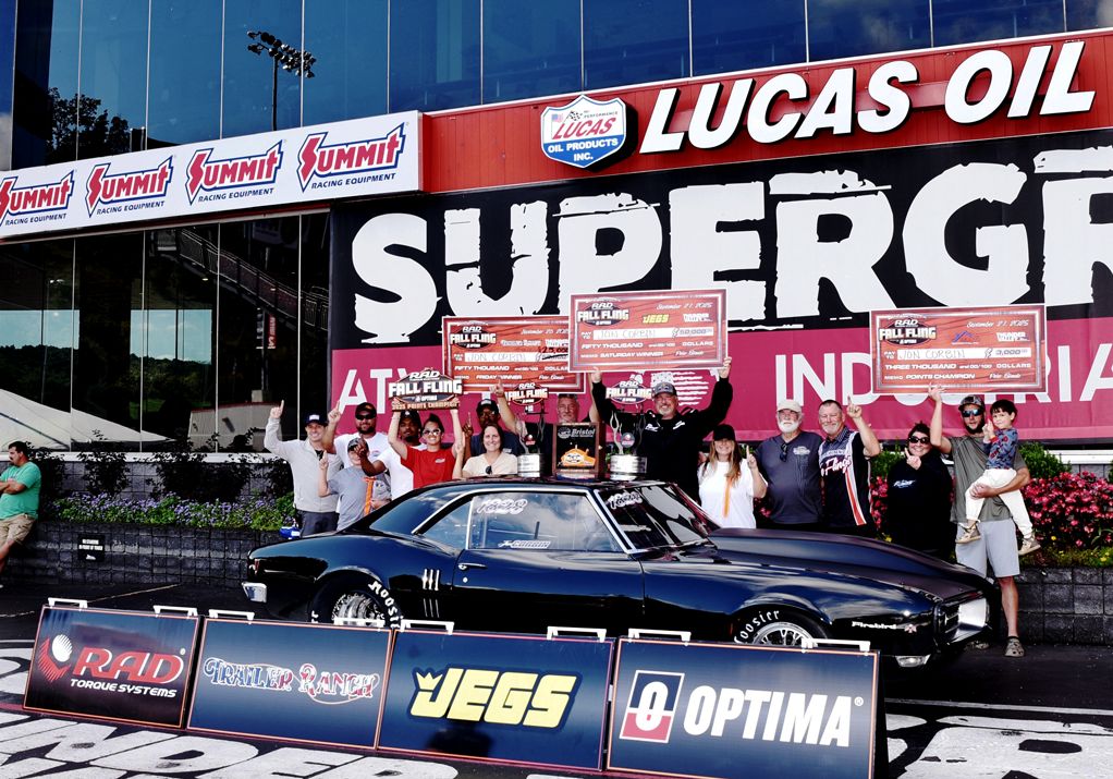 Jon Corbin dominated the final day at the RAD Torque Systems Fall Fling presented by OPTIMA Batteries at Bristol Dragway to secure the Trailer Ranch/JEGS Performance $75,000 purse and clinch the Robco Residential Fall Fling Points Championship by three rounds.