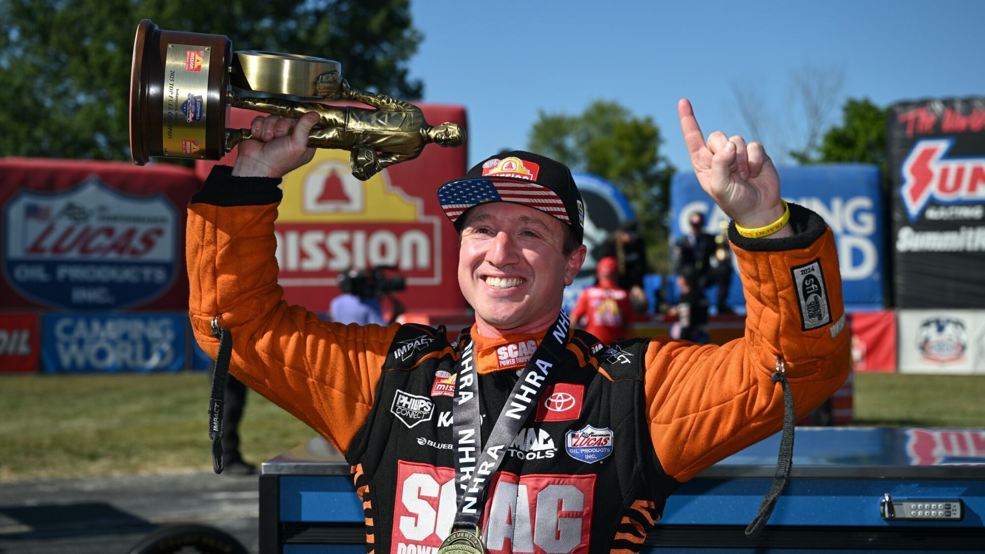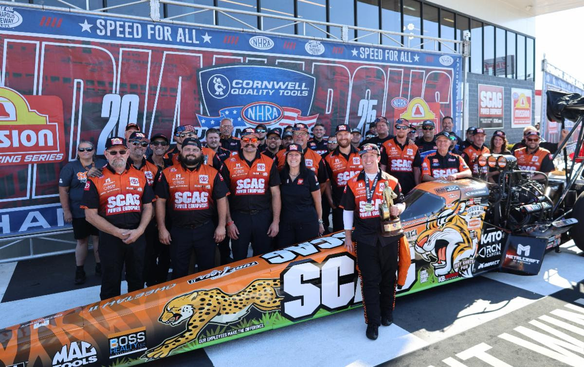 Justin Ashley and the SCAG Power Equipment Toyota Top Fuel dragster team rallied to a dominate victory Sunday at the Cornwell Quality Tools NHRA U.S. Nationals at Lucas Oil Indianapolis Raceway Park. It is Ashley’s first win at the ‘Big Go’, third of the 2025 season and 18th of his career. He wins the regular season finale 18 years after his father Mike Ashley won the prestigious event in Funny Car.