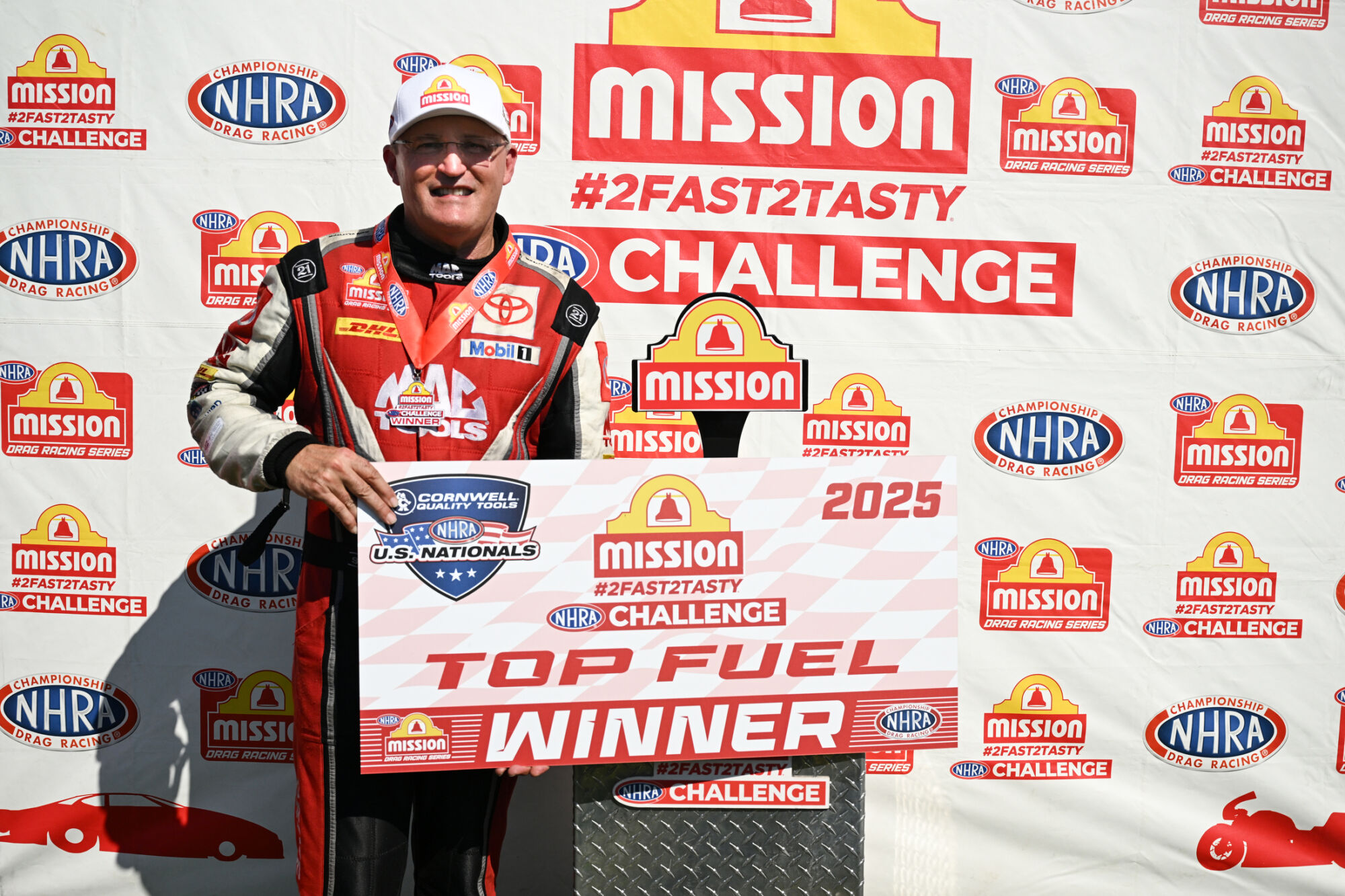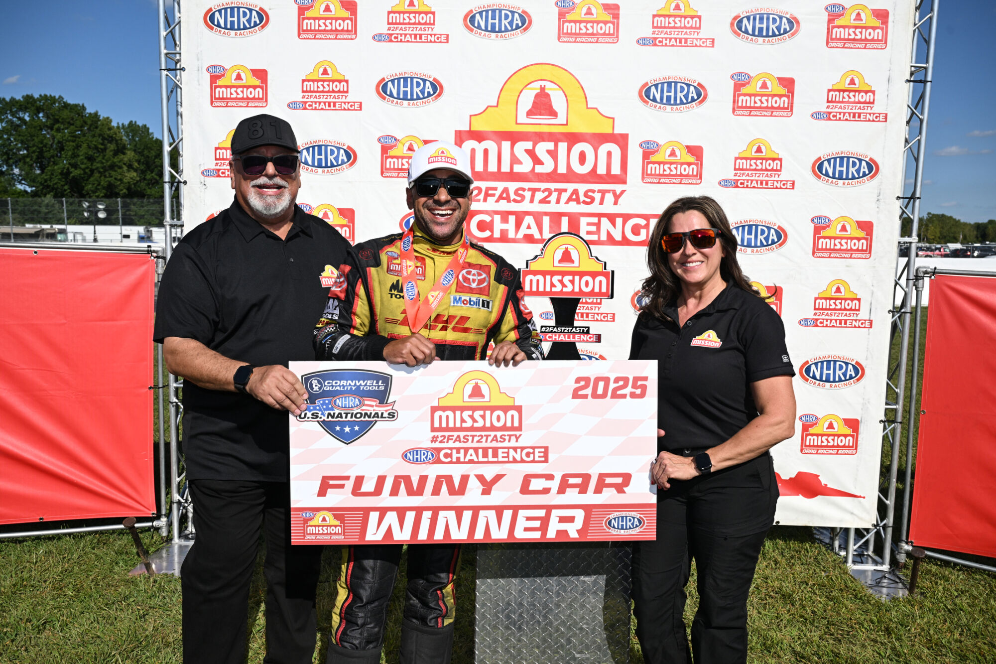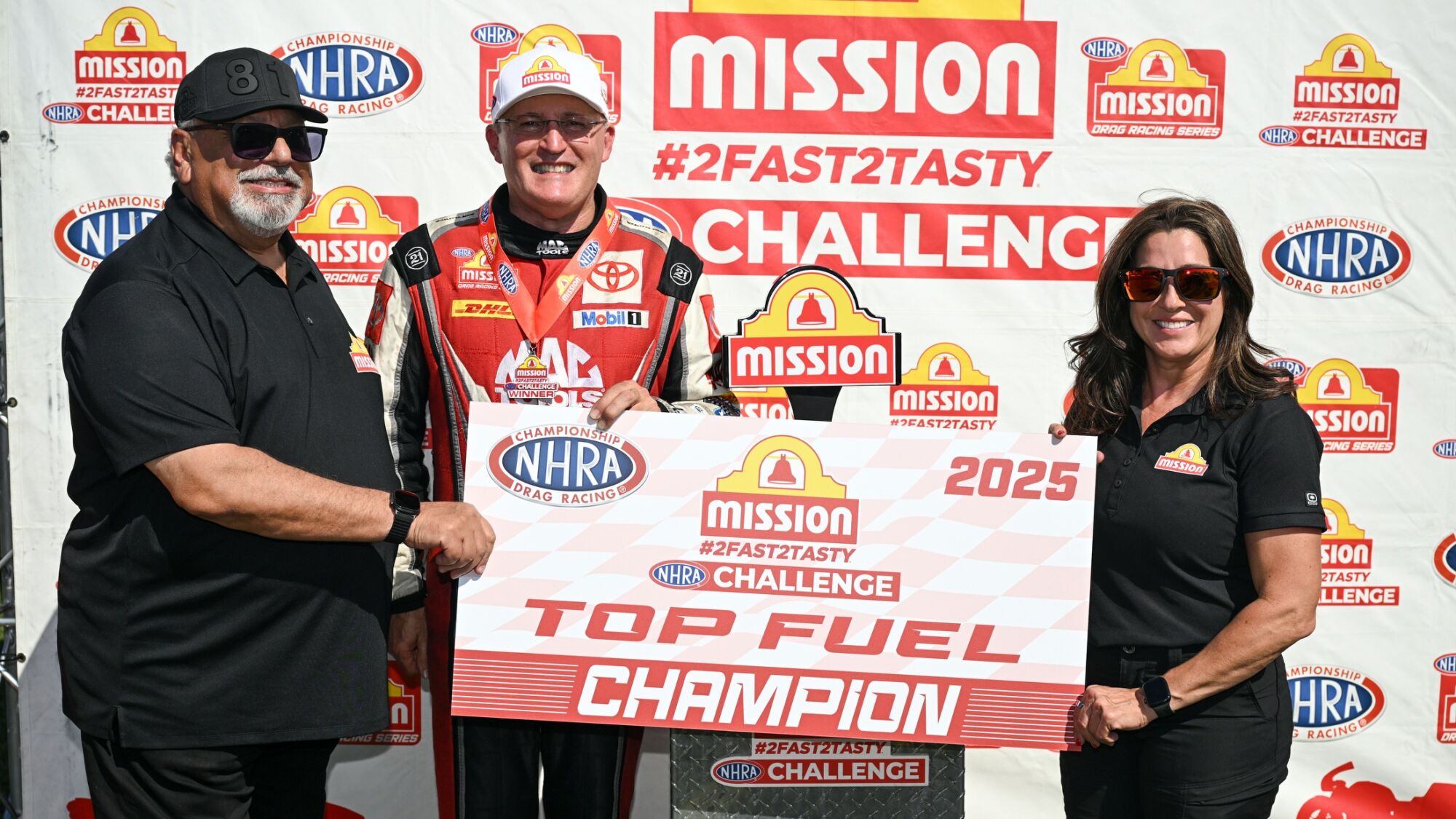 J.R. Todd (Funny Car), Greg Anderson (Pro Stock) and Richard Gadson (Pro Stock Motorcycle) also won the Mission #2Fast2Tasty Challenge, while Brittany Force (Top Fuel), Jack Beckman (Funny Car), Anderson and Gaige Herrera (Pro Stock Motorcycle) remained the provisional No. 1 qualifiers at the 14th of 20 races during the 2025 NHRA Mission Foods Drag Racing Series season.