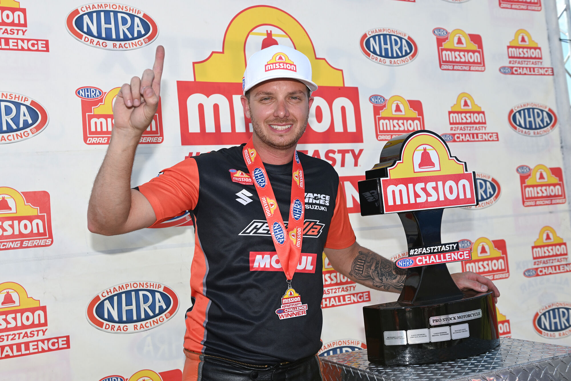 Daniel Wilkerson (Funny Car) and Gaige Herrera (Pro Stock Motorcycle) also won the Mission #2Fast2Tasty NHRA Challenge, while Justin Ashley (Top Fuel), Cruz Pedregon (Funny Car), Greg Anderson (Pro Stock) and Matt Smith (Pro Stock Motorcycle) qualified No. 1 at the 10th of 20 races during the 2025 NHRA Mission Foods Drag Racing Series season.
