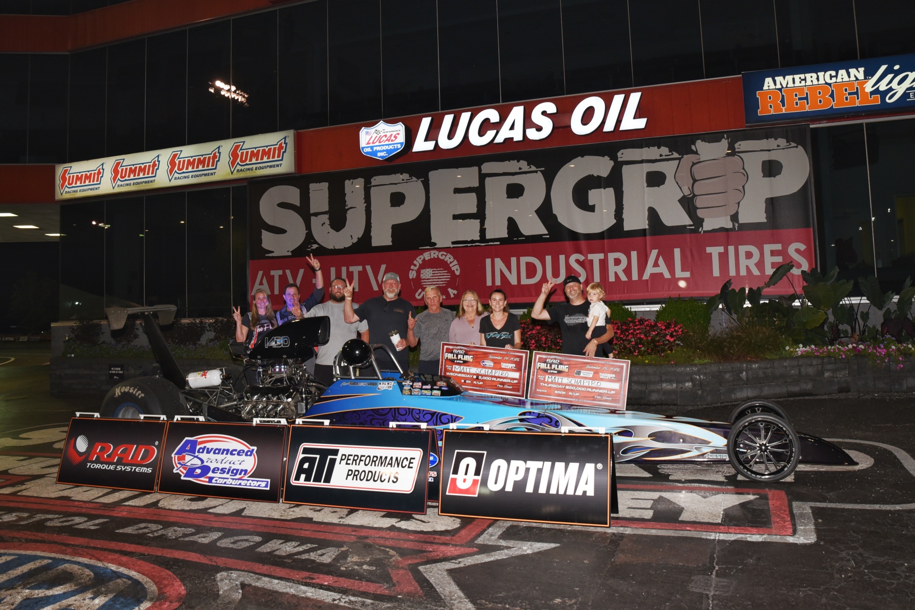 Kevin Pruett captured the first of two $75,000 purses on the combined Advanced Product Design and ATI Performance Products Friday at the RAD Torque Systems Fall Fling presented by OPTIMA Batteries at Bristol Dragway where 418 single-entered drivers staged up for round one.