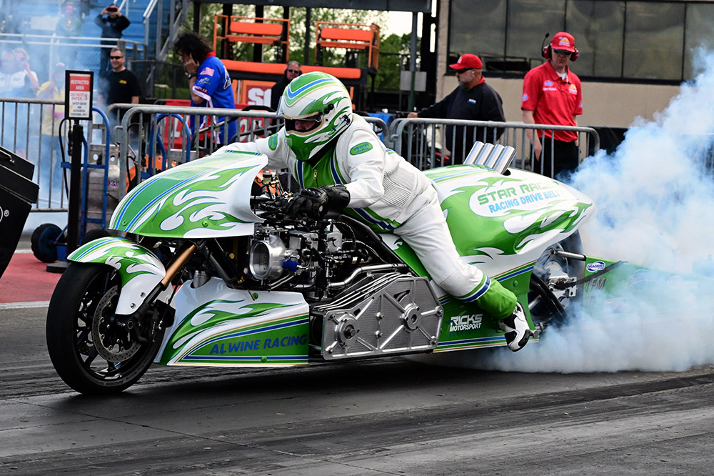 “Friday, I was so nervous because I hadn’t made a pass in six months,” said Salakari, who let out at about 400 feet in Q1. “Then on Saturday we were ready in the morning to run and we got pushed back a lot and eventually when we had our second qualifier, the bike just died on me while trying to run it to the burnout box. I was furious.