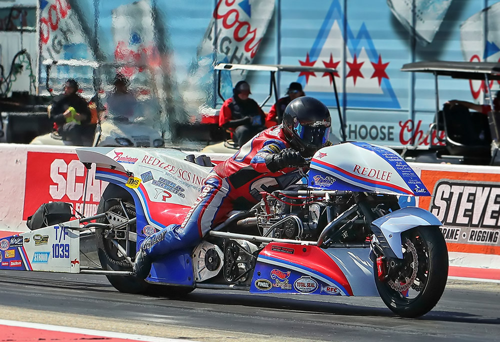 “Todd did an exceptional job of getting the fuel curve where the bike would go down the track safely and not hurt anything. We ran 4.03 in Tulsa on an early shut-off, and 4.02 and 3.98 in Chicago on early shut-off runs. The bike is fat and lazy because we have it set up safe. I don’t think it has touched the wheelie bars yet this season. We have a lot of work to do to get it to be quick, but we will get there I’m sure.