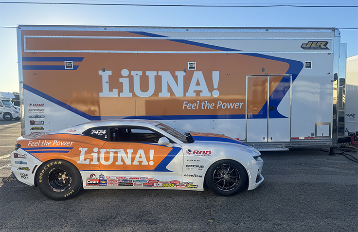 When Lamb pulls into In-N-Out Burger Pomona Dragstrip for race two in the Pacific Division this weekend, the Chevrolet COPO Camaro that he races in Stock Eliminator, as well as his race hauler, will prominently feature the bold orange Laborers International Union of North America (LIUNA) branding. His championship-winning Super Stock Camaro will continue to spotlight RAD Torque Systems, making for a powerful 1-2 punch in the new year and beyond.