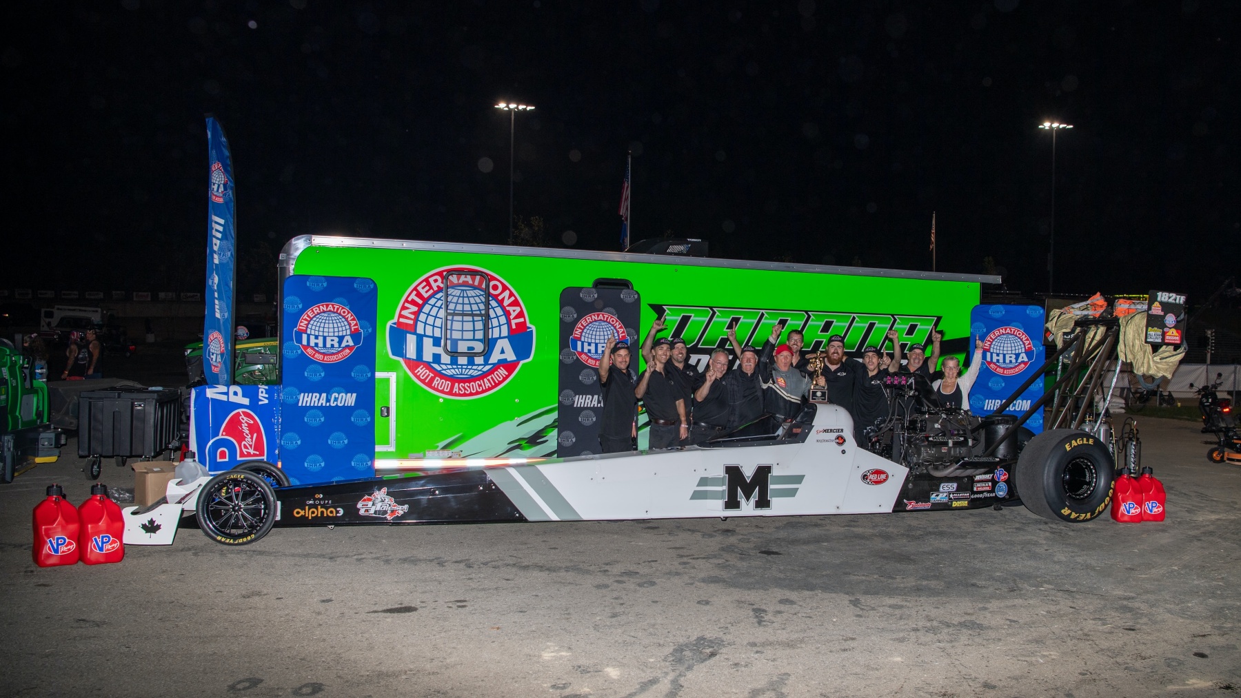 Dan Mercier and Del Worsham won Top Fuel and Funny Car races at the IHRA Outlaw Nitro Series event at Darana Dragway — West Salem, Ohio.