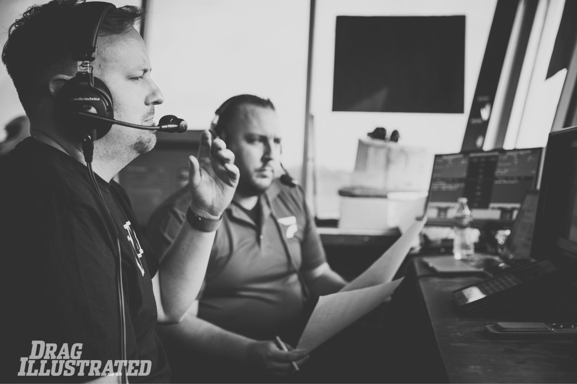 CALLING THE ACTION: Mike Carpenter, DI’s COO and Design & Production Director, joins FloRacing commentator Jason Galvin to provide color commentary during Saturday’s thrilling final qualifying session.