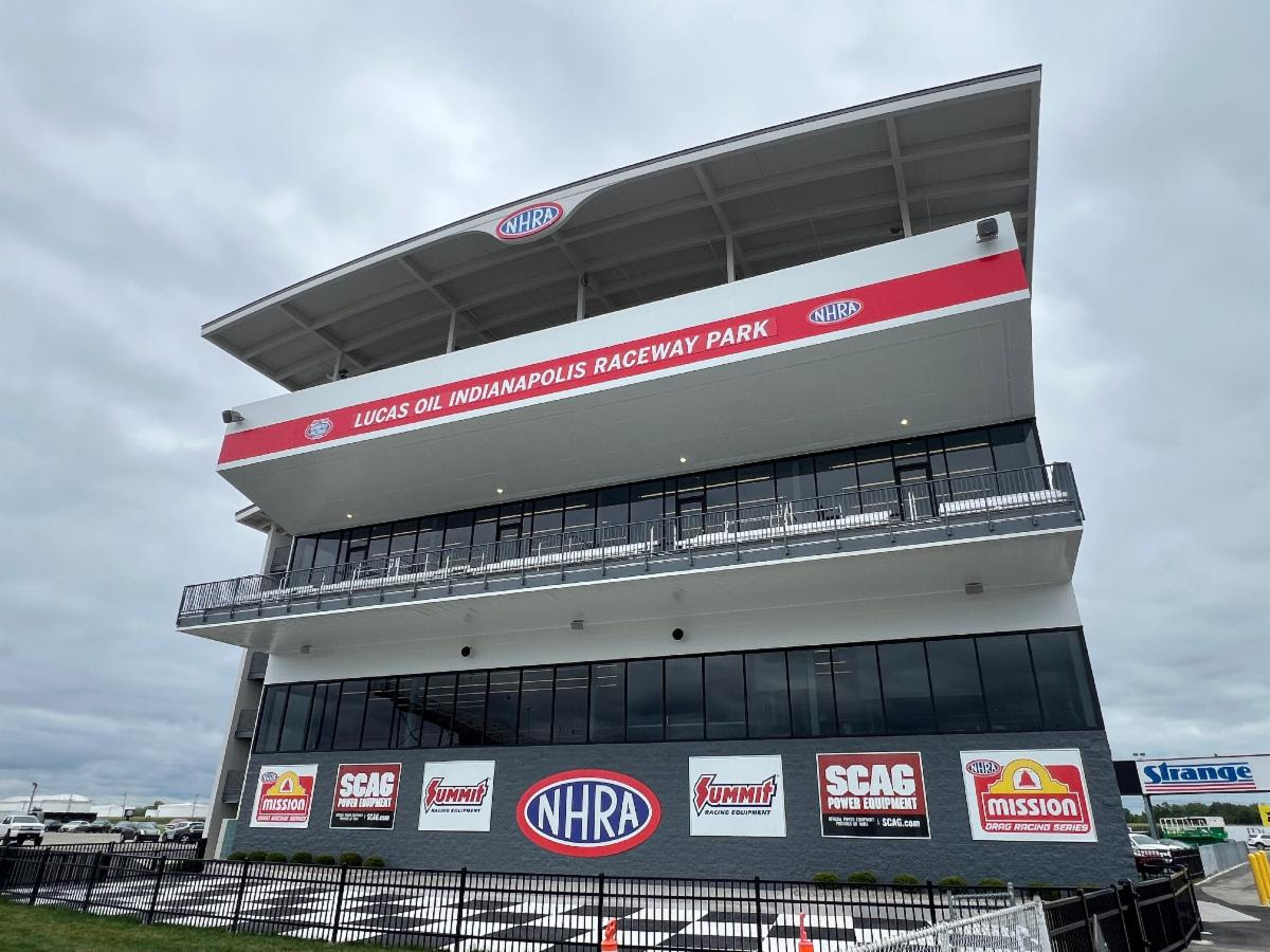 Sitting in the same area as the previous tower, the new facility also has dedicated bathrooms, two staircases and an elevator, along with a scenic winner’s circle backdrop that is a nod to the historic and memorable winner’s circle at Lucas Oil Indianapolis Raceway Park.