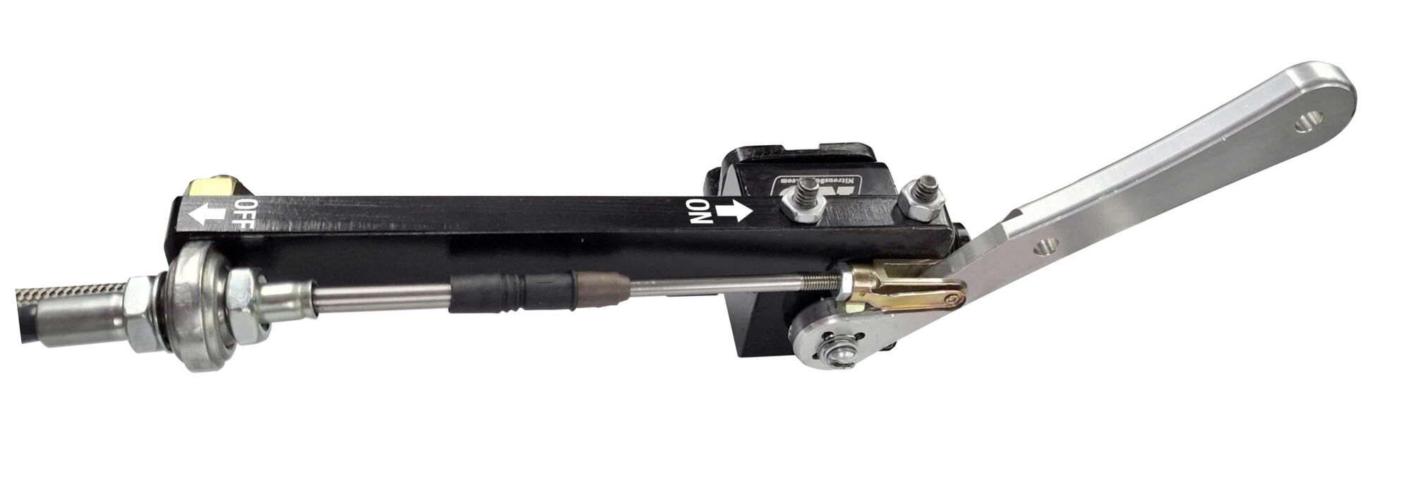 Responding to the need, industry veteran Mike Thermos and his team at Nitrous Supply have developed a nitrous control valve system that features a driver-actuated on/off lever, with an auxiliary “off” pull handle mounted for access by crew members or safety workers from outside the car.