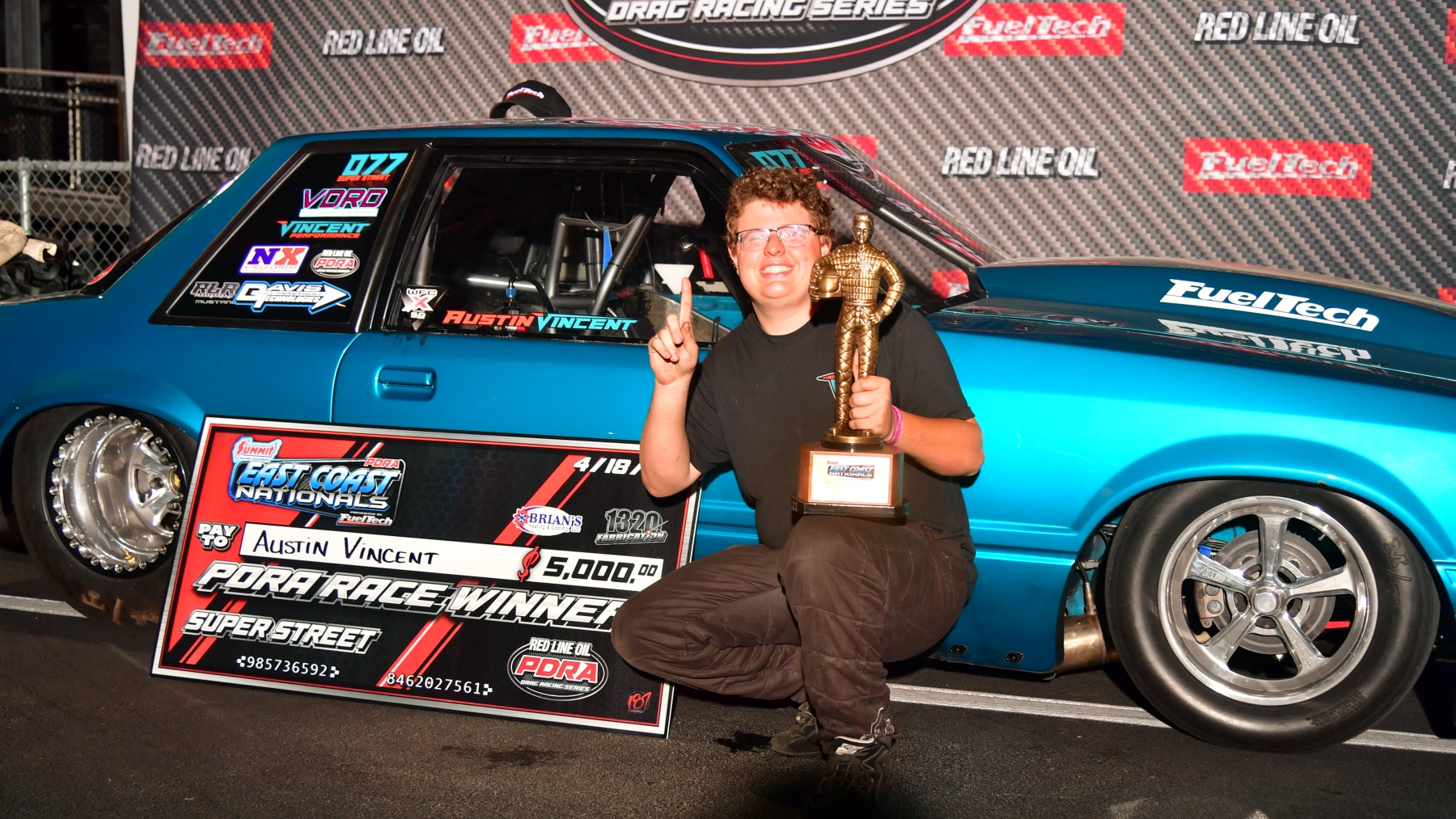 Following a 2025 season that resulted in a No. 2 finish in the Super Street points standings, Austin Vincent and the Vincent Performance team went to work over the offseason converting their nitrous-fed ’88 Mustang over to a FuelTech EFI setup. Those efforts paid off this weekend at the Summit Racing Equipment PDRA East Coast Nationals presented by FuelTech at Darana Motorsports Park – Benson, NC, where Vincent earned a decisive win over reigning world champion and No. 1 qualifier Connor McGee in the final round. McGee left the line first, but Vincent powered ahead with a 4.517 at 167.01 to McGee’s 4.569 at 156.35.