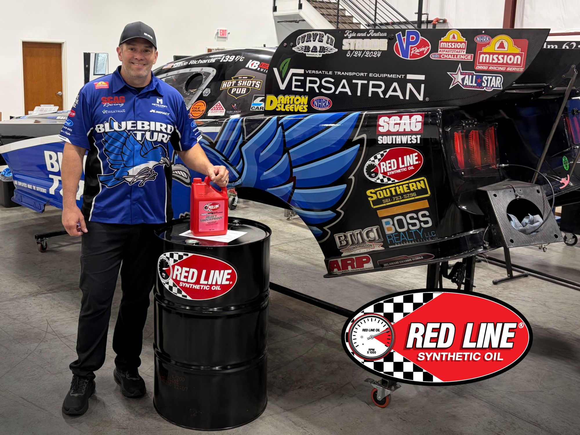 Red Line Oil branding will be featured on Richards’ Bluebird Turf Funny Car throughout the 2026 season as the SCAG Racing team chases wins coast to coast, beginning at the NHRA Gatornationals, March 6–8, in Gainesville, Florida.
