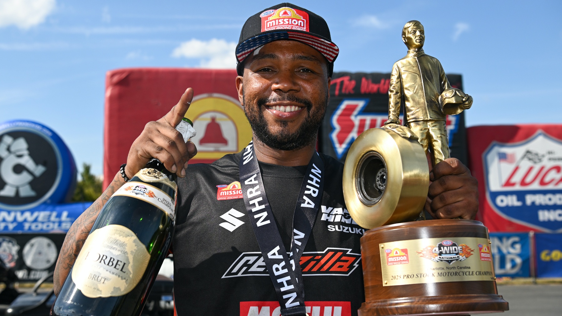 At the beginning of the year, Gadson had yet to win an NHRA race, coming up just short in his standout rookie season. But this year, he’s enjoyed a breakout campaign on his RevZilla/Motul/Vance & Hines Suzuki, winning three races and taking over the points lead following his victory last weekend in Charlotte.