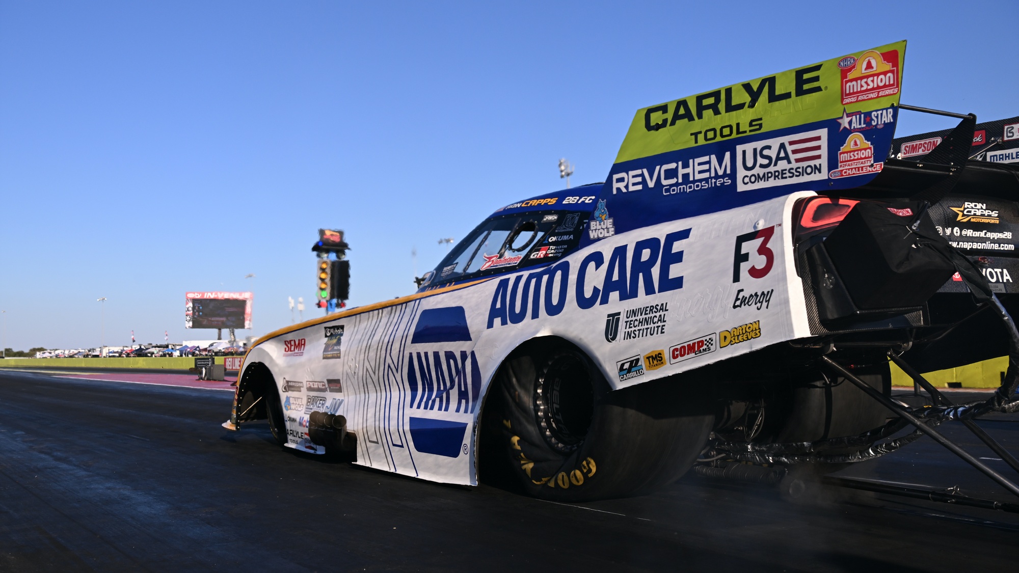 “Just one of those gut-check days for the NAPA Auto Care Toyota guys,” said Capps, a two-time winner of the FallNationals. “It was driver error in the first round, but we got by. Unfortunately, it damaged the body – not badly, as it’s fixable, but we couldn’t run it second round. We brought out the Carlyle Tools body, which we’re going to run in Las Vegas, and we were hoping to get a win there. It was cool that a lot of fans have bought our Carlyle shirts and, I guess the positive thing is, they got to see the Carlyle car in-person make the final round today. It was strange in the final. Prock poked his nose out there, but the car felt like it was running well. We came into this weekend wanting to make up ground in the points and we had to, and that’s exactly what we did. So proud of our NAPA Toyota team and let’s see if we can keep this momentum going into Las Vegas.”