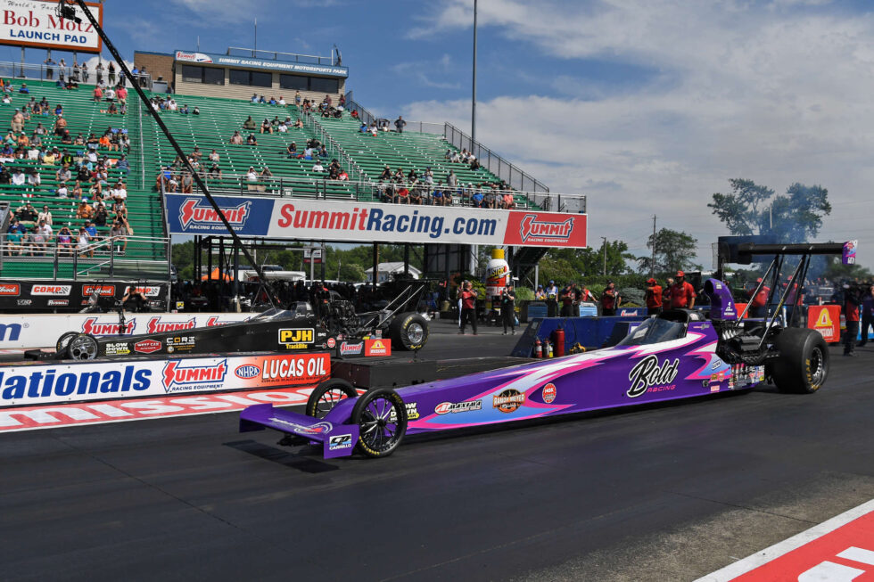 McKenna continued to improve with every pass in the purple Bold Racing dragster, entering the national event eliminations as the No. 1 qualifier with a strong 5.180-second run at 273 mph, setting low ET of the entire event. It was her first time qualifying at the top of the field at a national event, continuing to improve on her performance as she gets more comfortable in the nitro-injected dragster.