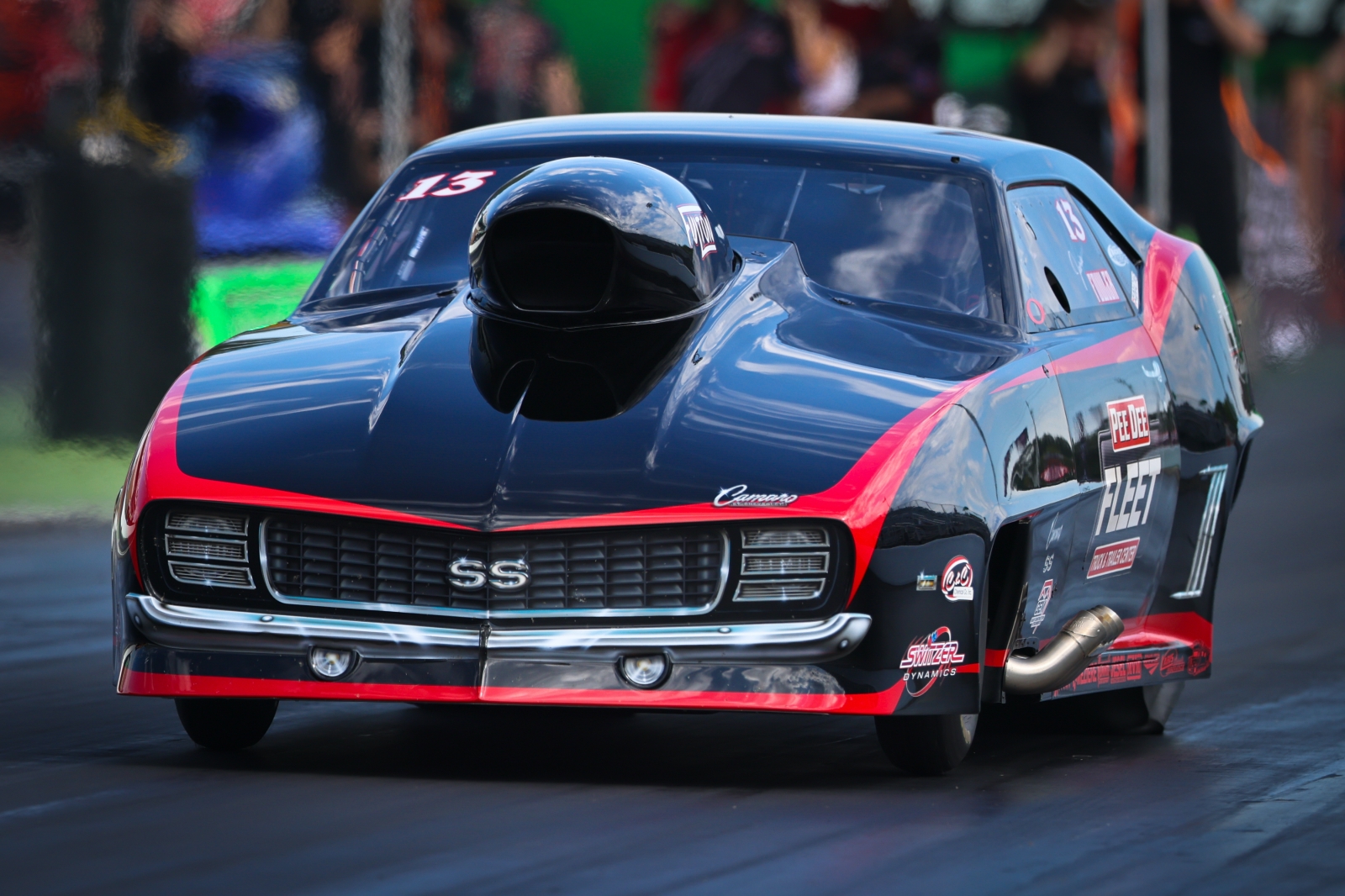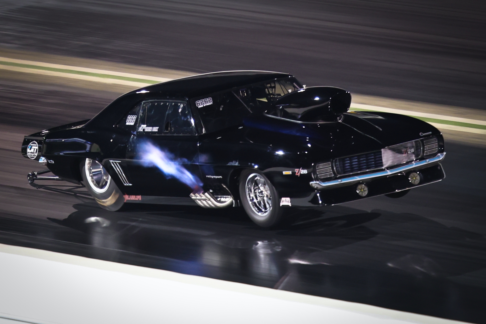 Two-time Pro Boost world champion Jason Harris was just a tick behind Salemi with his 3.586 at 210.50 in the Harts Charger-boosted “Party Time” Harold Denton tribute ’69 Camaro. Johnny Camp, winner of the postponed Carolina Nationals on Thursday night, qualified third in his Brandon Stroud-tuned, ProCharger-boosted “Hells Bells” ’69 Camaro with a 3.594 at 211.10.