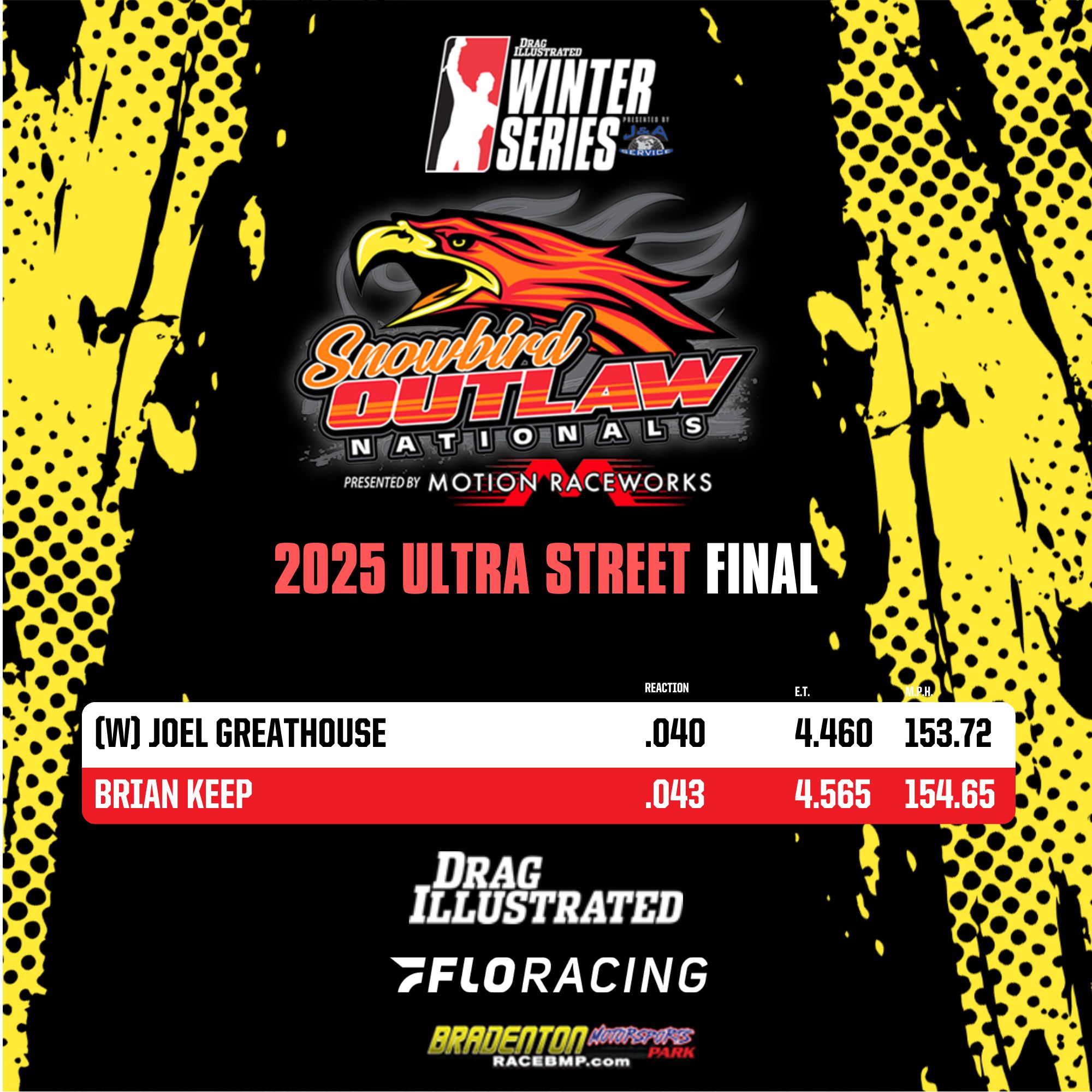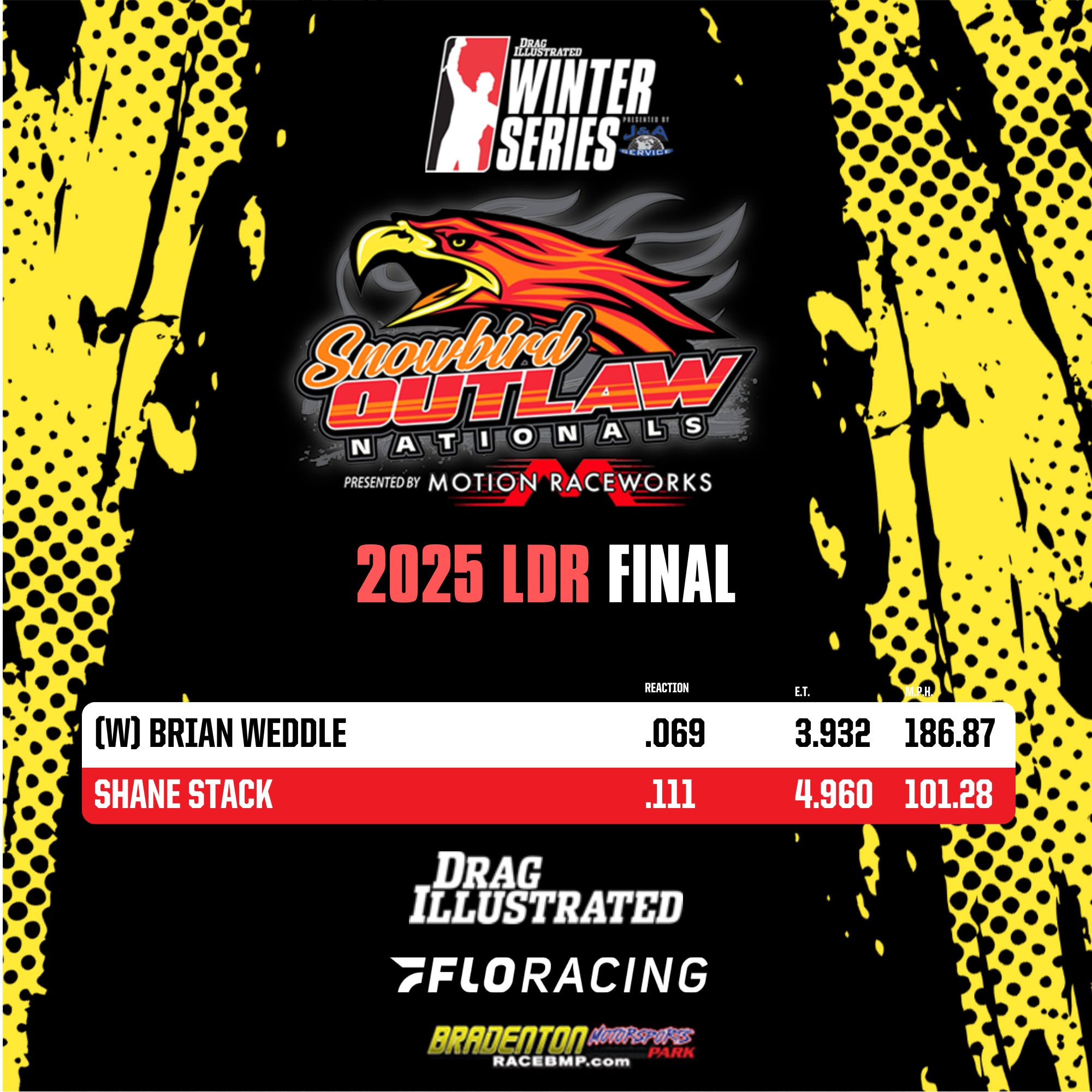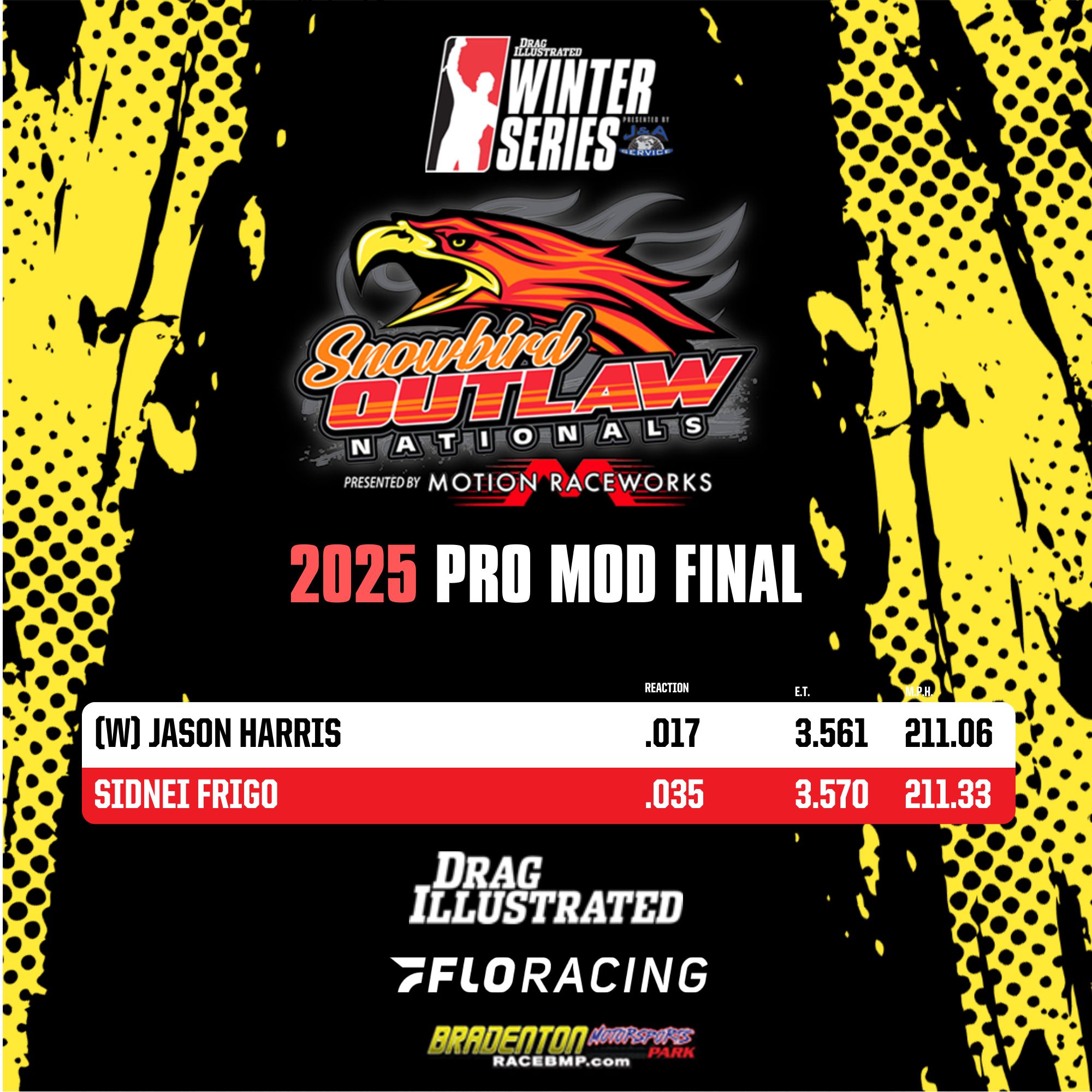 It’s race day at the 2025 Snowbird Outlaw Nationals presented by Motion Raceworks at Bradenton Motorsports Park. The historic event serves as the opening race of the second annual Drag Illustrated Winter Series presented by J&A Service, a three-race Pro Mod series paying out more than $275,000 to race winners and the series champion. The event also includes Pro 10.5, True 10.5 N/T, Lil Gangstas, Limited Drag Radial, Ultra Street and more.