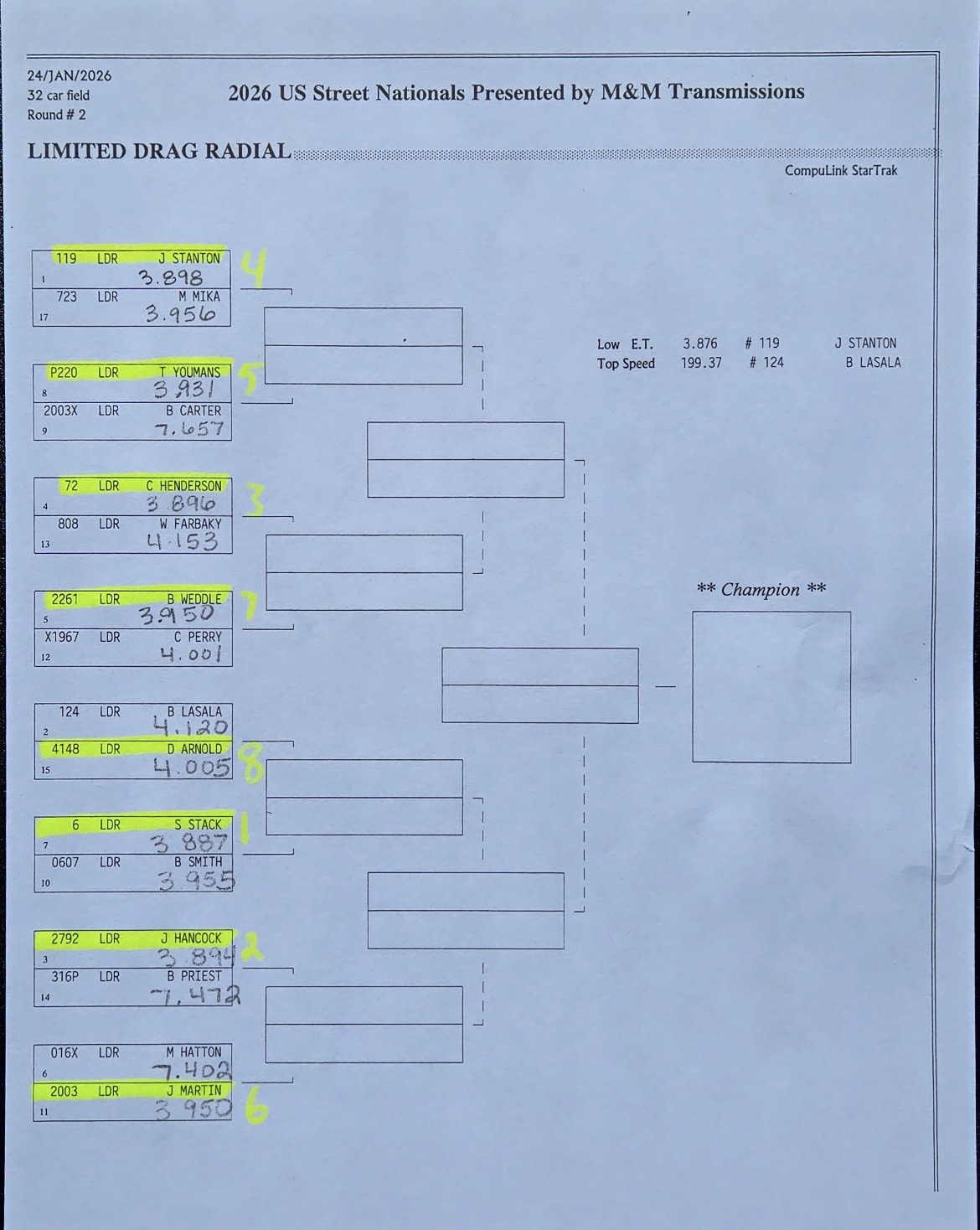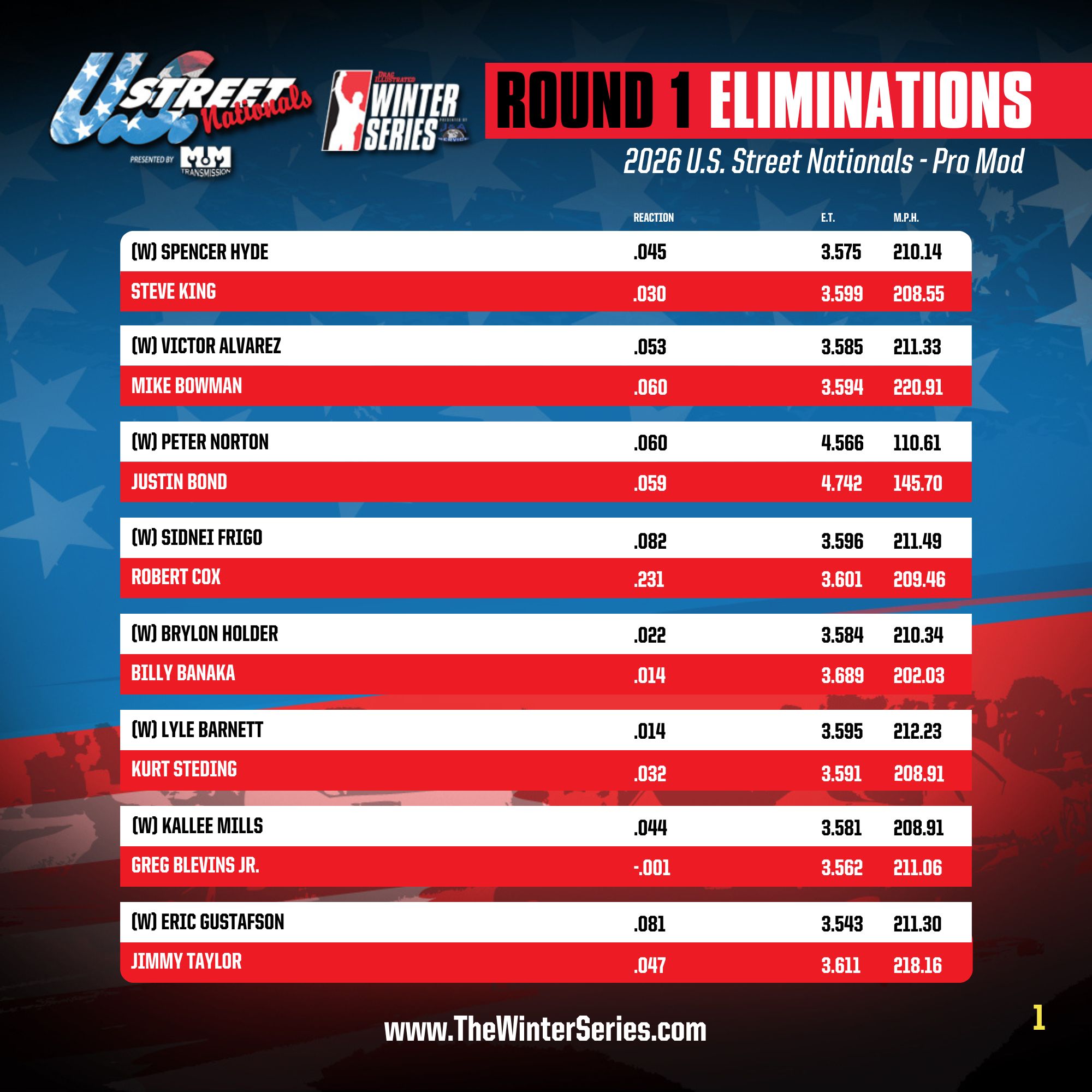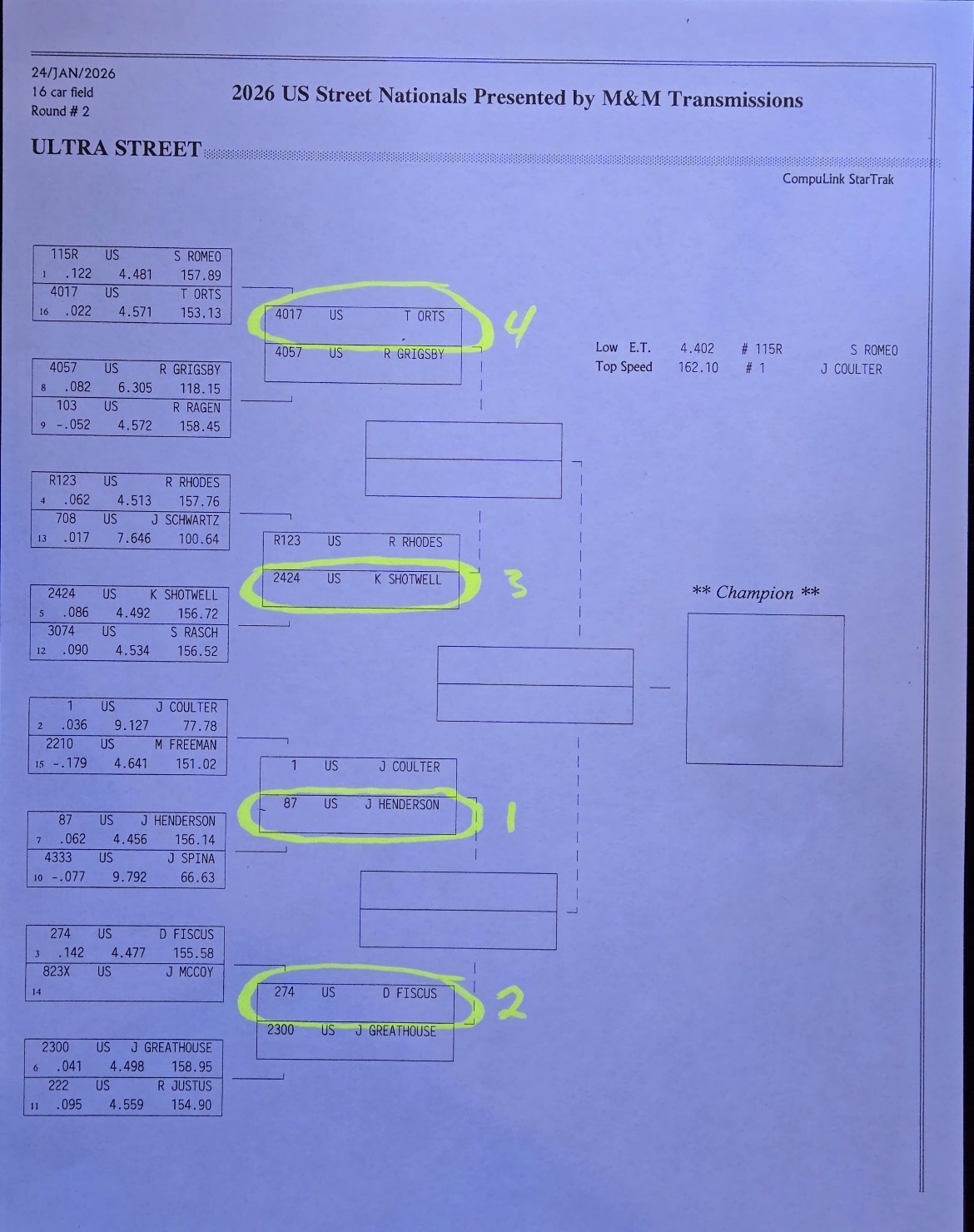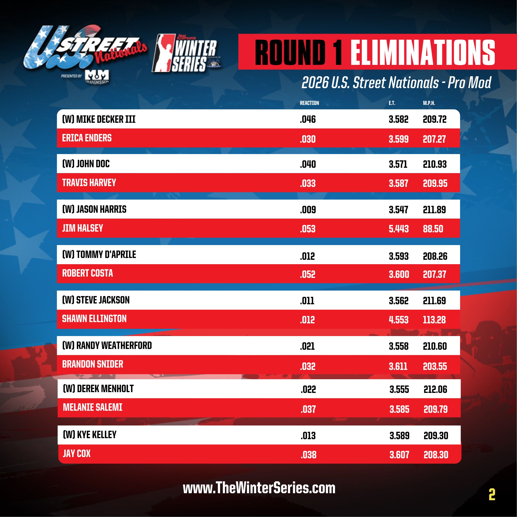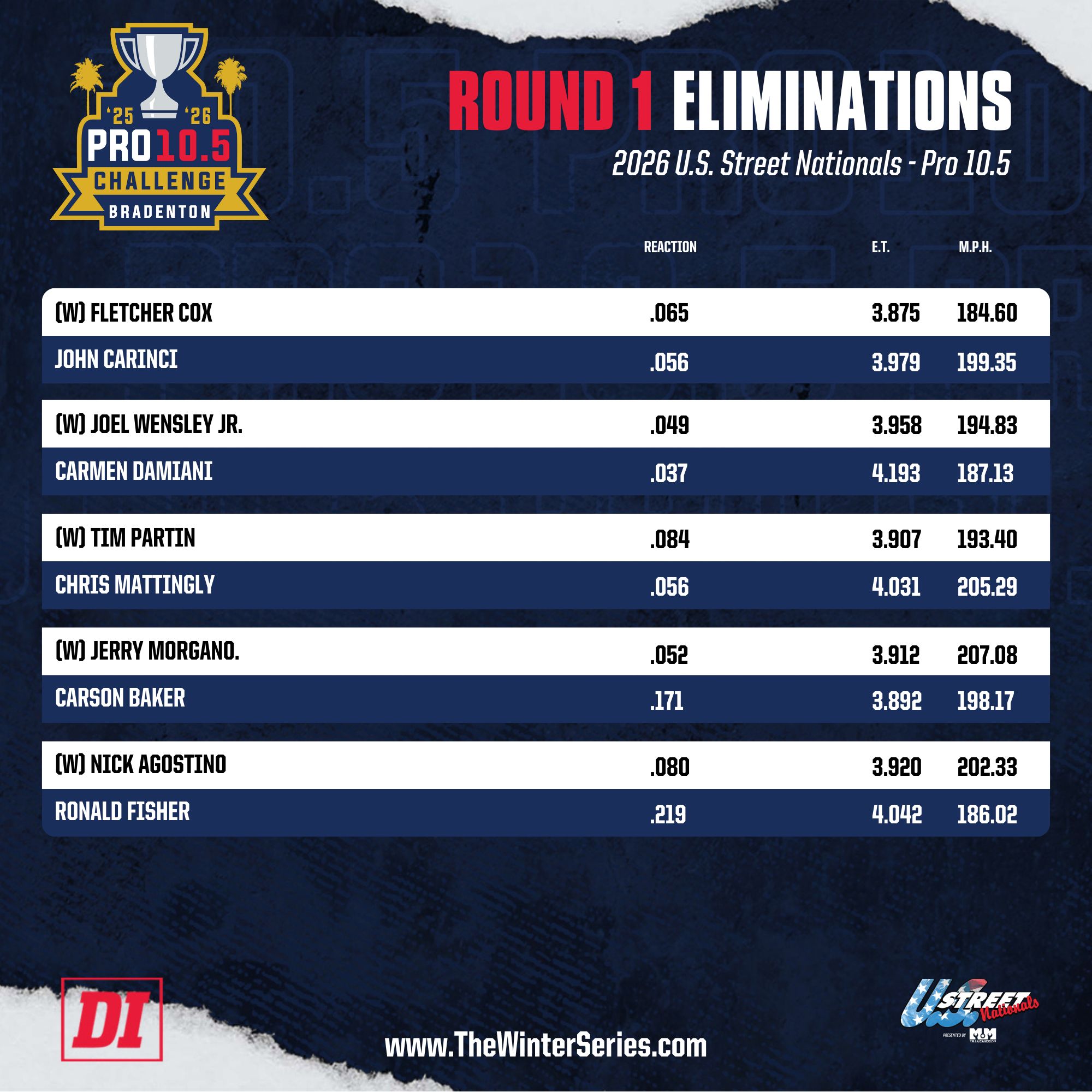 Radial results courtesy of the FuelTech Radial Outlaws Series.