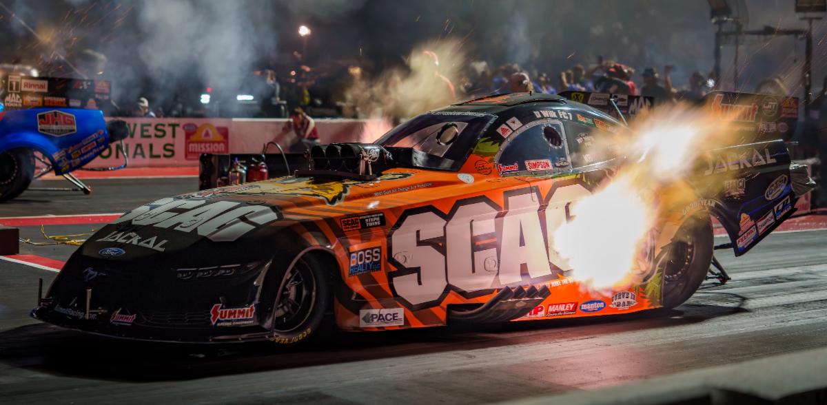 Wilkerson qualified fifth in the SCAG Power Equipment Ford Mustang Funny Car with a strong 3.926-second pass at 327.51 mph, setting up an all-SCAG round-one battle with teammate Dave Richards. Richards, who qualified on his final attempt with a 4.026 at 311.05, encountered issues in the opening round and slowed to a 5.613 at 136.36, while Wilkerson laid down a clean 3.909 at 325.37 to move on.