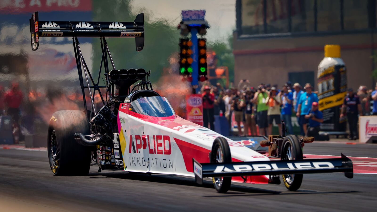 Kalitta defeated reigning Top Fuel champion Antron Brown for the second time in as many races in the first round. In the second round, Kalitta’s Applied Innovation dragster made a 3.900-second run at 324.36 mph, but Clay Millican left the starting line first and beat Kalitta by .0072 seconds despite recording a slightly slower elapsed time.