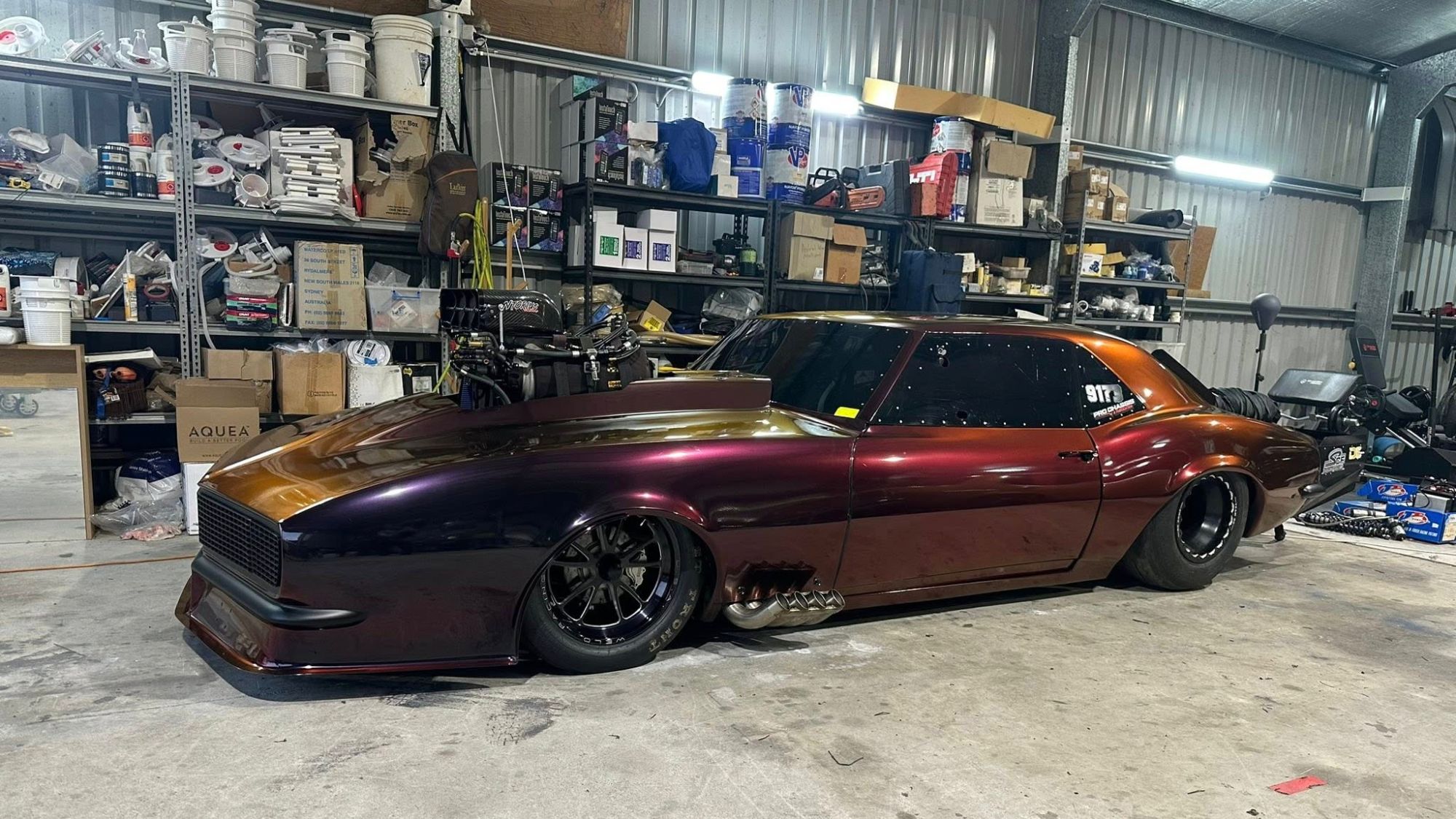 O’Carroll decided to step up his game after that appearance and multiple trips to the states visiting big events like No Prep Kings races with Kye Kelley and Justin Swanstrom and Big Jake’s prepped grudge race events at Xtreme Raceway Park in Ferris, Texas. He purchased a former Outlaw 10.5 first-gen Camaro originally built and raced by Jim Robbins back in 2009. O’Carroll’s brother bought the car from Robbins and had it shipped Down Under. It was raced as a nitrous car and changed hands a few times before O’Carroll bought it and front-halved the car, making it a double frame rail, full tube chassis car with radial racing in mind.