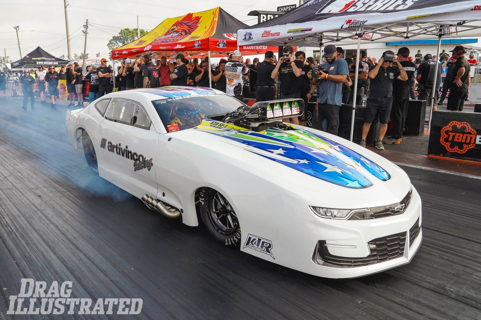 Working with tuners Jeff Pierce and Stevie “Fast” Jackson out of the Killin’ Time Racing camp, Frigo made a major statement with his performance in the screw-blown Artivinco Racing ’23 Camaro. He ran in the low 3.60s in the first four rounds to knock down the three winners from the inaugural Winter Series – Drag Illustrated World Series of Pro Mod winner Steve King in round two, defending Snowbirds winner Kye Kelley in round three, and U.S. Street Nationals winner and Winter Series champion Ken Quartuccio in the semifinals. Frigo is second in points.