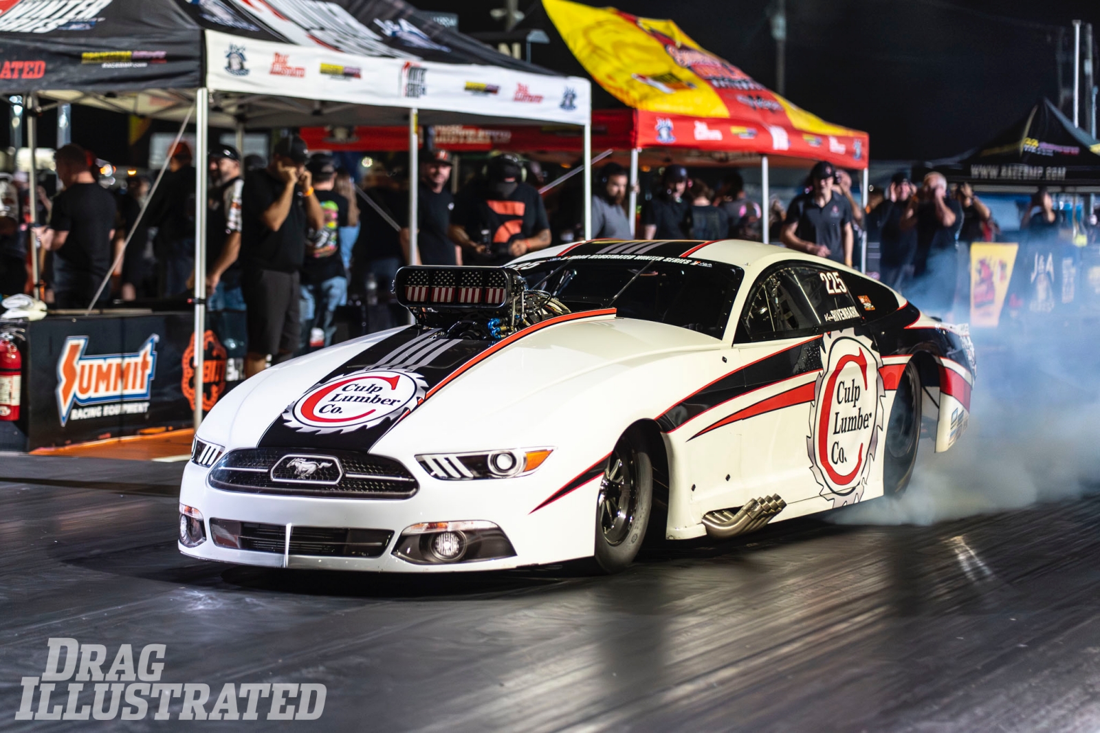 Three-time PDRA Pro Boost world champion Kevin Rivenbark is fourth in points with his semifinal finish driving Stan Shelton’s screw-blown Culp Lumber ’21 Mustang. Rivenbark was outside the 32-car field in the No. 34 spot after the final qualifying session, but he was inserted into the field as an alternate due to a few crashes and breakage. His 3.658 fell to Harris’ 3.576 in the semis.