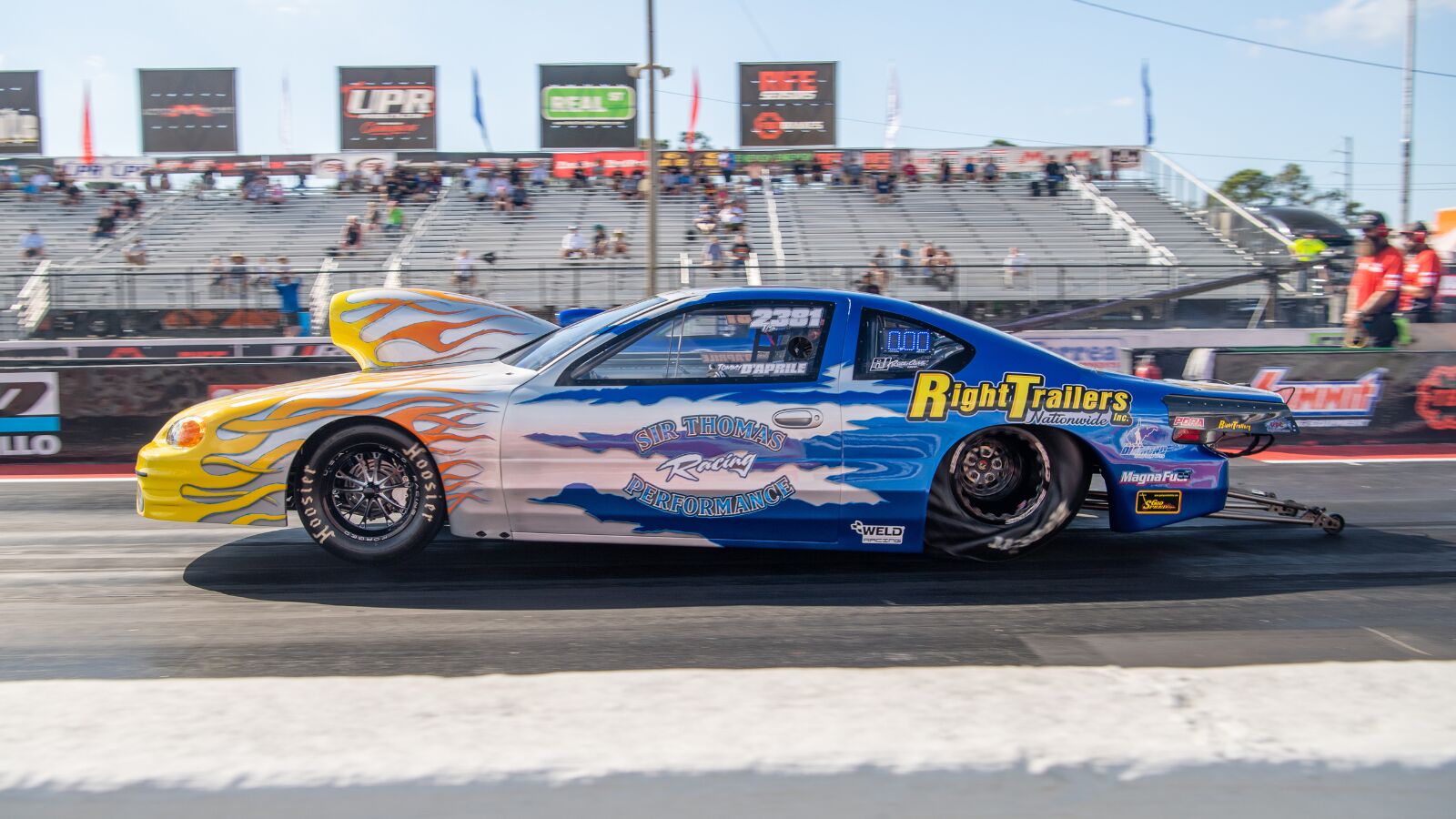 Florida’s own Tommy D’Aprile, who pens the long-running “The Real Deal” column in this magazine, launches hard in his Sir Thomas Performance/Right Trailers Grand Am during a Top Sportsman qualifying session at the SCAG Power Equipment PRO Superstar Shootout.