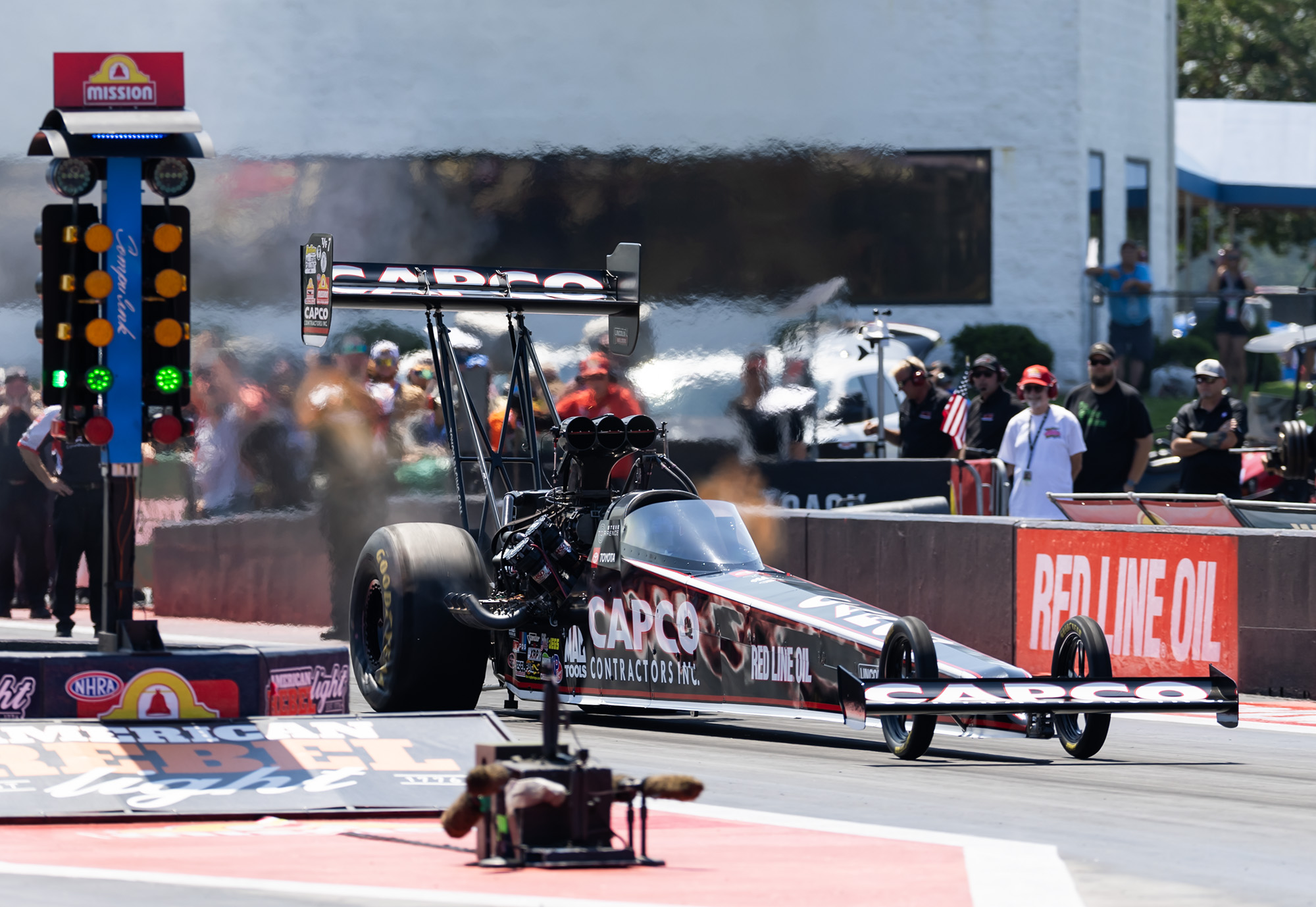 After illuminating seven straight win lights, the streak ran out for Steve Torrence and his CAPCO Contractors Top Fuel Toyota in the second round of Sunday’s 15th American Rebel Light Beer Virginia Nationals at Virginia Motorsports Park.