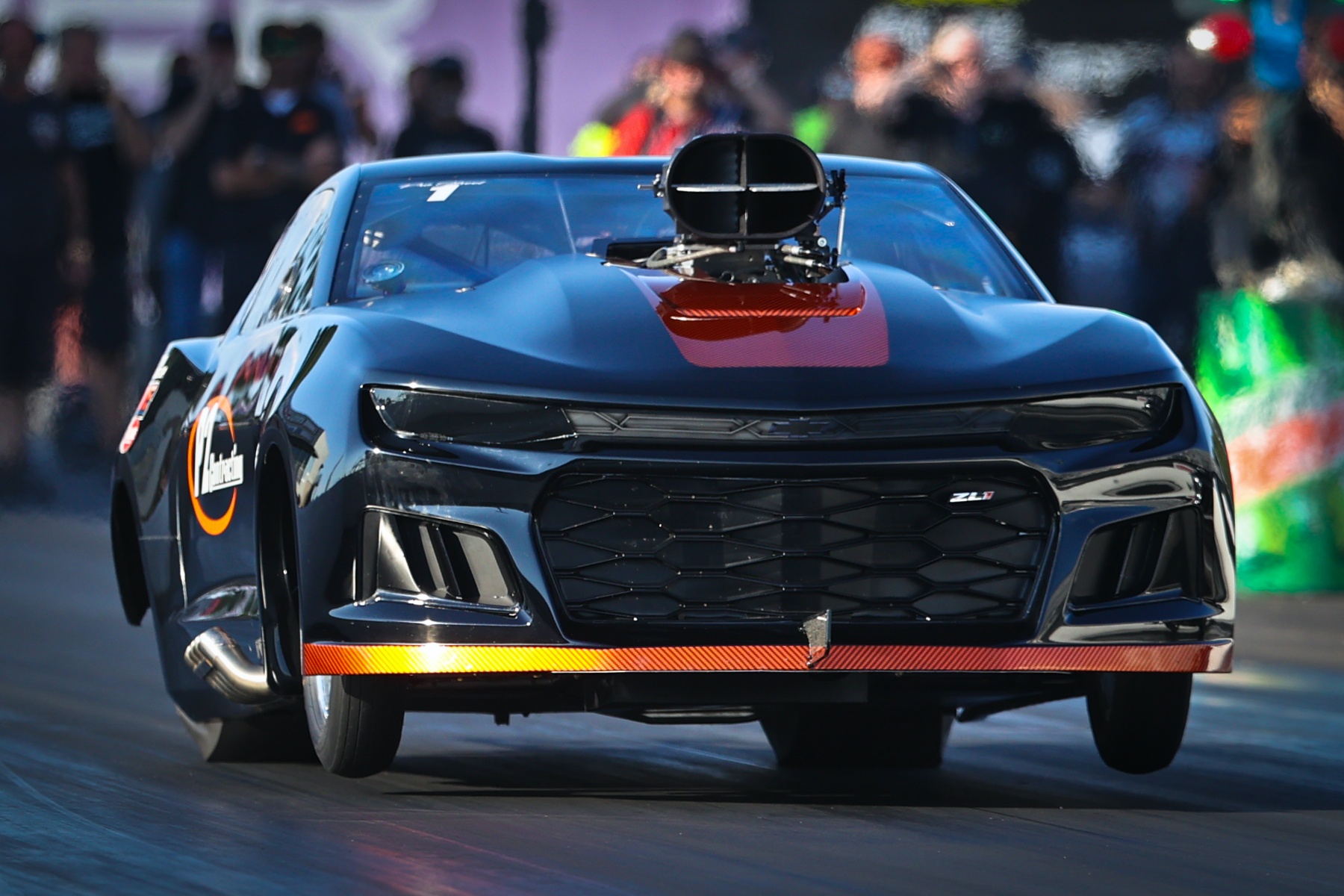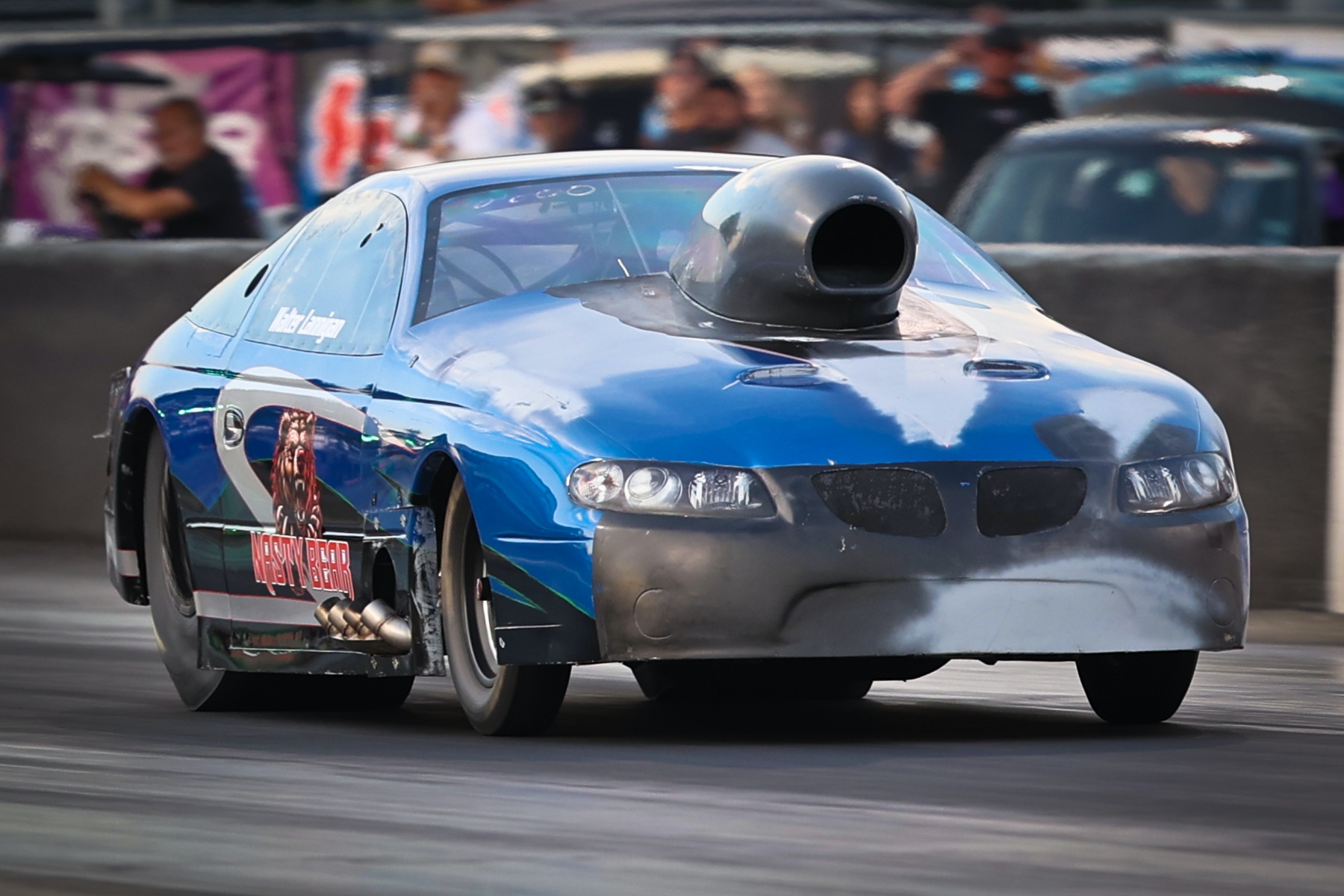 Reigning Pro Street world champion Ethan Steding trailed Blake Denton in the points standings for the first half of the season, but when he took out Denton in the opening round at the Thunder Valley Throwdown at Bristol Dragway, the door was open for Steding. He ran right through it, charging to a runner-up finish in the Thursday night completion of the rain-delayed Bristol race, then followed it up with his third win of the season on Saturday night. Steding, a past Pro Jr. Dragster world champion, lined up against class veteran Ron Green in the final round. Steding’s roots-blown P2 Contracting “College Fund” ’24 Camaro moved first and led the whole way, winning with a 3.925 at 194.74 to Green’s 3.938 at 179.35. Steding is now the points leader with one race left in the season.
