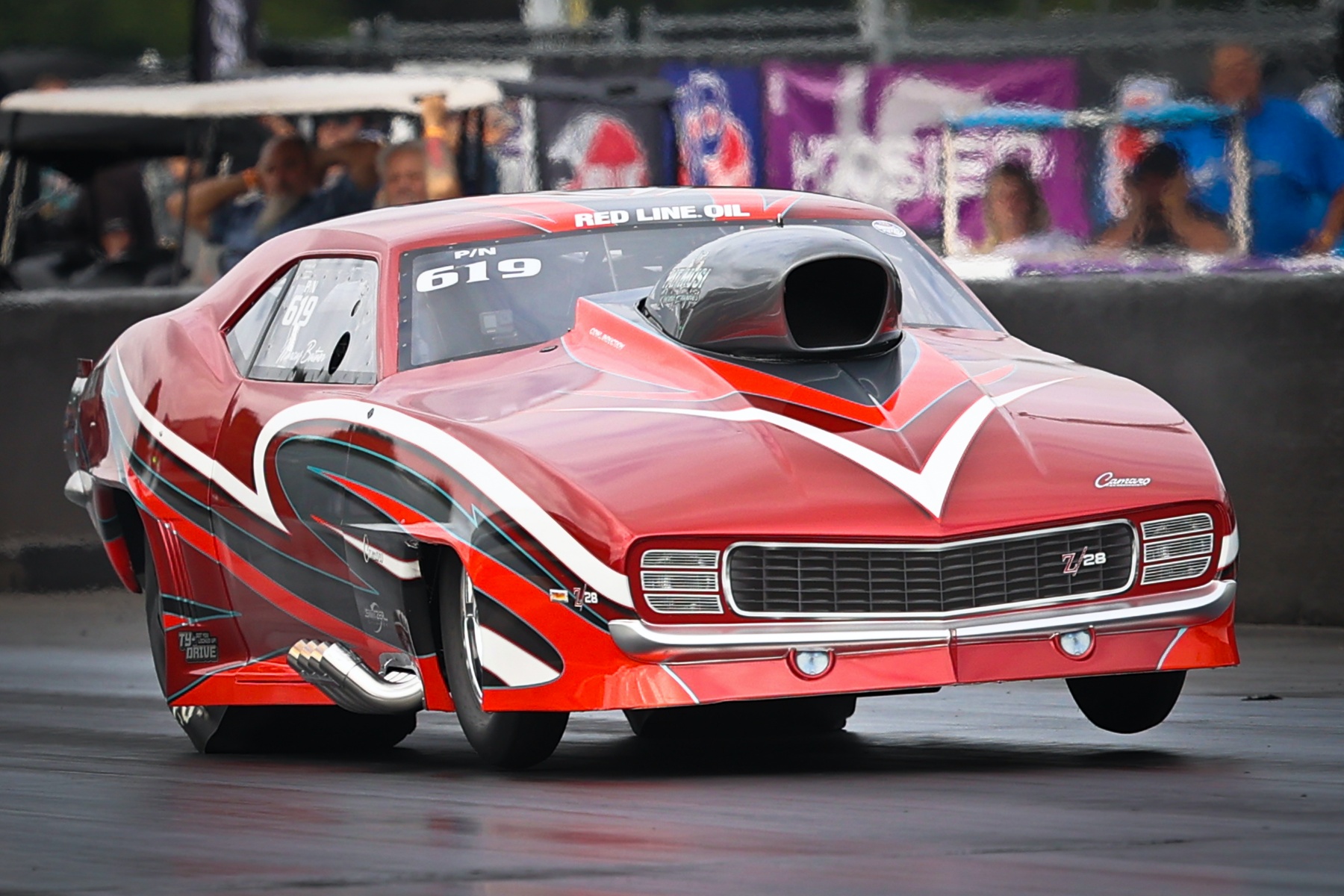 Marcus Butner’s third career Pro Nitrous win was meaningful in more than one way, as he parked his Jay Cox-tuned, Musi-powered “Heartbreaker” ’69 Camaro in the winner’s circle at his home track while also putting himself in a position to chase the world championship at the World Finals in three weeks. Racing three-time world champion and points leader Tommy Franklin in the final round, Butner left second but had the power to get around Franklin. Butner won with a 3.634 at 207.78, while Franklin had to muscle his way to a 3.666 at 203.71. Butner is now just over two rounds behind Franklin in the points standings.