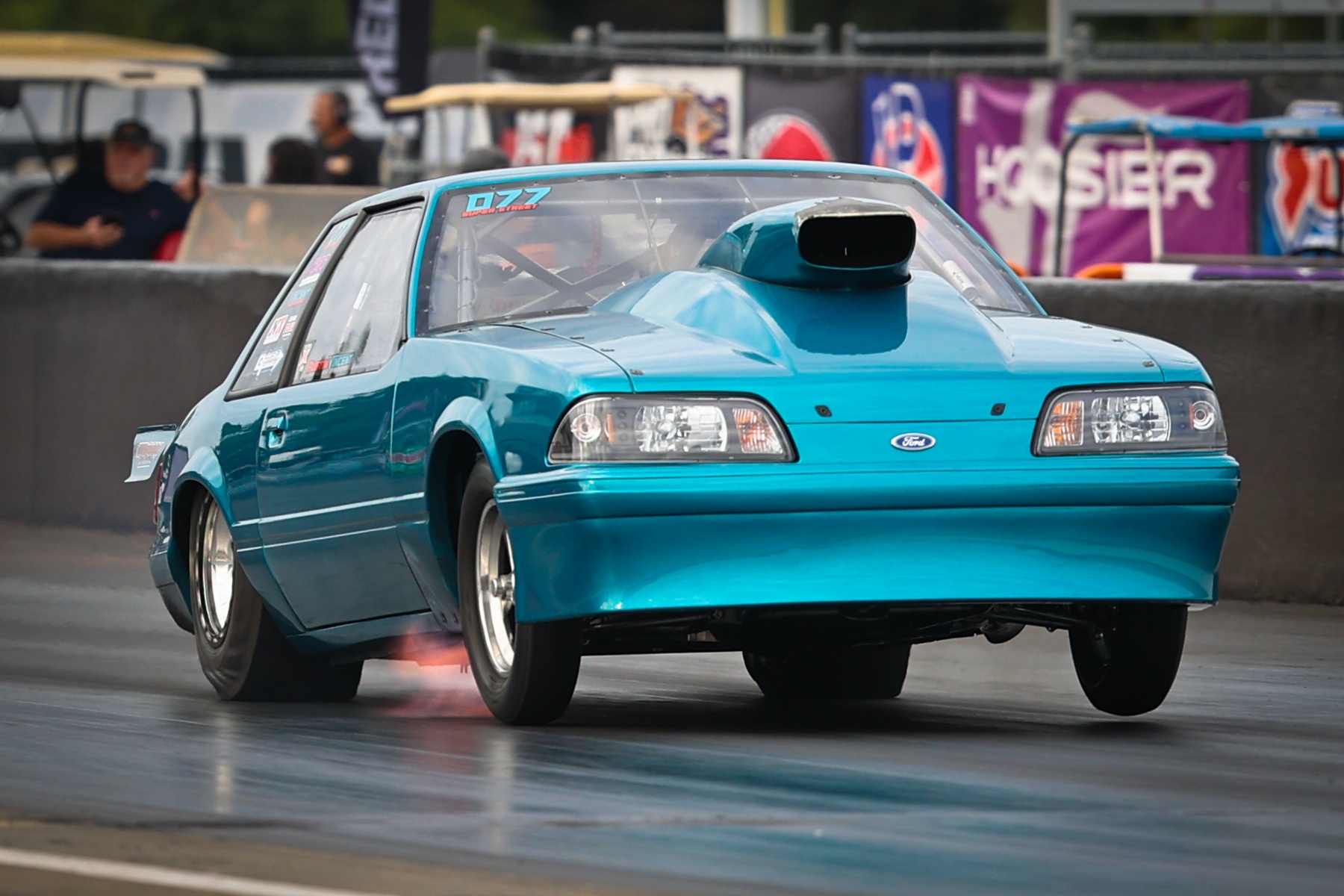 McGee started the weekend by winning the Bristol race for the second straight year. He qualified No. 5 for DragWars in his Fulton-powered Brian’s Heating & Cooling ’90 Mustang and started eliminations with a holeshot win over rookie Carson Perry, running a 4.58 at 156.50 to Perry’s 4.575 at 155.51 for a .0006 margin of victory. He then met up with reigning world champion and No. 1 qualifier Dan Whetstine in the semifinals, where Whetstine went red by .007 seconds. McGee advanced with a 4.559 at 157.10, earning lane choice for the final.