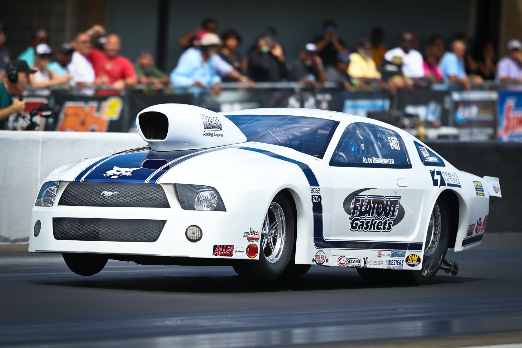Alan Drinkwater, the 2023 Extreme Pro Stock world champion and points leader, denied young gun Jordan Ensslin a second consecutive victory when the two met up in the final round. Ensslin, who earned his first career win in the class Thursday night in the weather-extended Thunder Valley Throwdown, grabbed a slight starting line advantage, but Drinkwater powered to a 4.075 at 176.74 in his Kaase-powered Flatout Gaskets ’08 Mustang to get around Ensslin and his 4.093 at 175.55. The win padded Drinkwater’s points lead going into the World Finals.